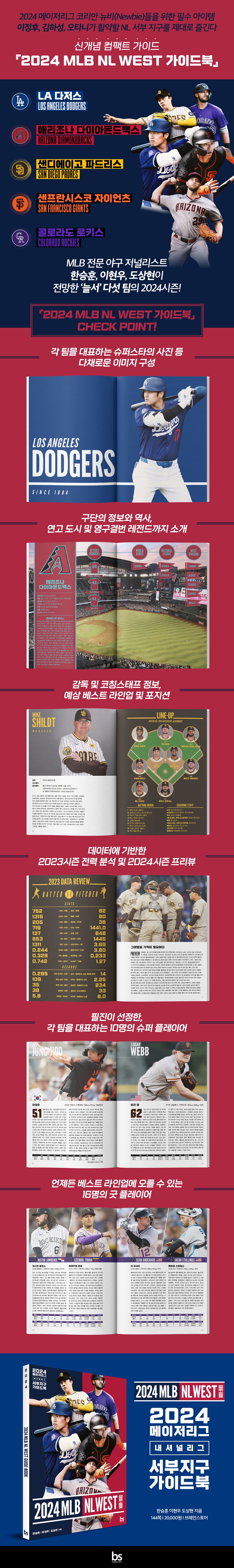 ÀÌ·± ³»Àû Ä£¹Ð°¨ÀÌ °¡µæÇÑ ¸ÞÀÌÀú¸®±× ÆÀµéÀ» ÁÖÀΰøÀ¸·Î Çѵ¥ ¹Àº ÃÖÃÊÀÇ Ã¥ÀÌ ¹Ù·Î ½Å°³³ä ÄÄÆÑÆ® °¡ÀÌµå ¡º2024 ¸ÞÀÌÀú¸®±× ³»¼Å³Î¸®±× ¼ºÎÁö±¸ °¡À̵åºÏ - 2024 MLB NL WEST GUIDE-BOOK¡»ÀÌ´Ù. ´Ü¾ðÄÁ´ë, ÀÌ Ã¥Àº ¿ÃÇØ óÀ½À¸·Î ¸ÞÀÌÀú¸®±×¸¦ Á¦´ë·Î Á¢ÇÏ°Ô µÇ´Â ´ººñ ÆÒµé¿¡°Ô °¡Àå ½±°íµµ ¿Ïº®ÇÑ ¾È³»¼°¡ µÇ¾î MLB ÁøÀÔÀ庮À» Å©°Ô ³·ÃçÁÙ °ÍÀÌ´Ù.