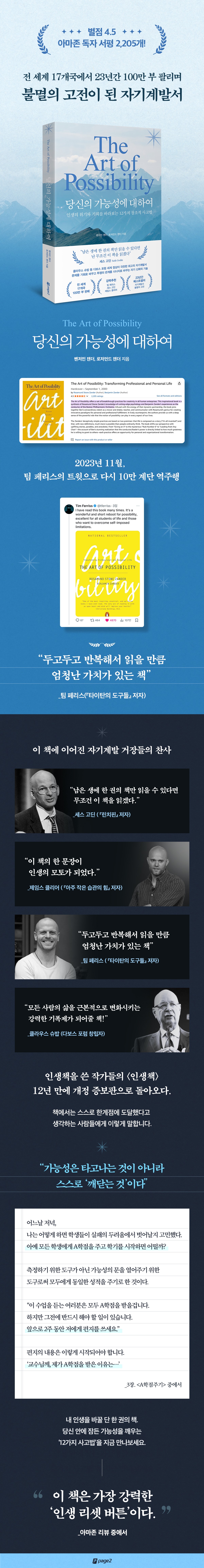 ¡º´ç½ÅÀÇ °¡´É¼º¿¡ ´ëÇÏ¿©¡»´Â ¹Ì±¹¿¡¼ ù ¹ß°£µÈ ÀÌÈÄ 23³â°£ º£½ºÆ®¼¿·¯ ÀÚ¸®¸¦ ÁöŲ ÀÚ±â°è¹ß ºÐ¾ßÀÇ °íÀüÀÌ´Ù. º¸½ºÅÏ ÇÊÇϸð´Ð ¿ÀÄɽºÆ®¶ó ÁöÈÖÀÚÀÎ º¥Àú¹Î Àé´õ¿Í °¡Á· Ä¡·á »ó´ã»ç °â ¼ºÃë ÇÁ·Î±×·¥ °»çÀÎ ·ÎÀú¸Õµå Àé´õ°¡ °øµ¿ Àú¼úÇÑ ÀÛǰÀ¸·Î, µÑÀº ºñÁî´Ï½º¡¤±³À°¡¤¿¹¼ú¡¤°¡Á¤ µî ´Ù¾çÇÑ ºÐ¾ß¿¡¼ ÀÏ¾î³ ¹®Á¦µéÀ» ÇØ°áÇϰí, À§±â¸¦ ±âȸ·Î ¹Ù²Ù¾î ÁÙ ¿µÎ °¡Áö âÁ¶Àû »ç°í¹ýÀ» Á¦¾ÈÇÑ´Ù.