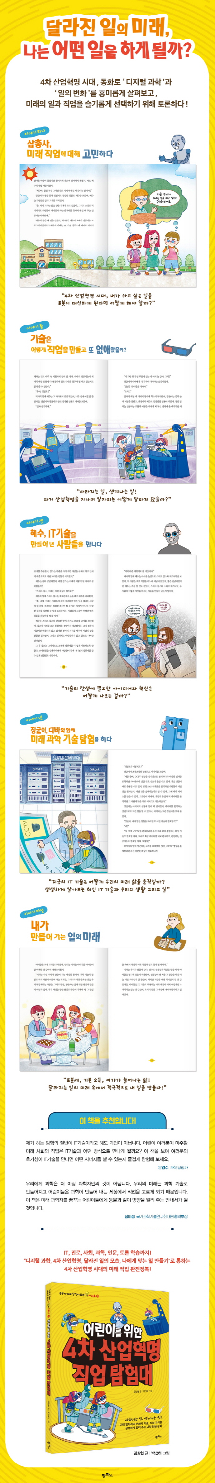 ¡¶¾î¸°À̸¦ À§ÇÑ 4Â÷ »ê¾÷Çõ¸í Á÷¾÷ ŽÇè´ë¡·´Â ±â¼ú °úÇÐÀÌ ´õ¿í ¹ß´ÞÇÏ´Â ¹Ì·¡ ½Ã´ëÀÇ ²ÞÀ» Ű¿ö³ª°¥ ¾î¸°ÀÌ Ä£±¸µé¿¡°Ô ÀÏÀÇ º¯È¿Í ´Þ¶óÁö´Â Á÷¾÷ °¡Ä¡¸¦ Àϱú¿öÁÖ´Â Á÷¾÷ Àι® µ¿ÈÃ¥ÀÌ´Ù. ´«ÀÌ ºÎ½Ã°Ô ¹ß´ÞÇØ°¡°í ÀÖ´Â µðÁöÅÐ °úÇÐ ¼¼»ó¿¡¼ »ç¶óÁö´Â Àϰú »ý°Ü³ª´Â ÀÏÀº ¹«¾ùÀÎÁö ¾Ë·Á ÁØ´Ù. ¾î¸°À̵鿡°Ô ¹Ì·¡ ±â¼ú°ú Á÷¾÷¿¡ ´ëÇÑ ¿¬°á°ú È帧À» º¸¿©ÁÖ°í, ÇÊ¿äÇÑ ¼Ò¾ç¿¡ ´ëÇØ¼µµ À̾߱âÇÑ´Ù. ¶ÇÇÑ ¿©°¡ÀÇ Áõ°¡, ·Îº¿°úÀÇ Çù¾÷ µî ´Þ¶óÁö´Â ÀÏÀÇ °¡Ä¡¿Í ÀÌ·Î ÀÎÇÑ »ýȰÀÇ º¯Èµµ »ý»ýÇÏ°Ô º¸¿© ÁØ´Ù. ¾î¸°À̵鿡°Ô 4Â÷ »ê¾÷Çõ¸íÀ» À̲ô´Â ÇÙ½É ±â¼ú 5°¡Áö¿Í ÀÌ·Î ÀÎÇÑ Á÷¾÷µéÀ» ¼Ò°³ÇØÁÖ¸ç ¡®µðÁöÅÐ °úÇÐÀÇ ÀÏ¡¯¿¡ ´ëÇÑ Á¤º¸¸¦ ¾È³»ÇØÁØ´Ù. Á÷¾÷°ú °úÇÐ, Àι®À̶ó´Â ¿©·¯ ¿µ¿ªÀÇ À̾߱⸦ Èï¹Ì·Î¿î µ¿È¸¦ ÅëÇØ ¿¬°áÁö¾î ¼Ò°³ÇÏ¸ç ¾î¸°À̵éÀÌ ½±°í Àç¹ÌÀÖ°Ô ÀÌÇØÇÒ ¼ö ÀÖµµ·Ï µ½´Â´Ù. ¾î¸°À̵éÀº Áö±ÝÀÇ °ü½É»ç¿Í ²Þ, ´É·ÂÀÌ ¾ÕÀ¸·Î ¾î´À ¹æ¸éÀÇ ÀÏ¿¡¼ Ȱ¾àÇÏ°í ´õ ¸ÚÁö°Ô ¾²ÀÌ´ÂÁö ±ú´Ý°Ô µÉ °ÍÀÌ´Ù.