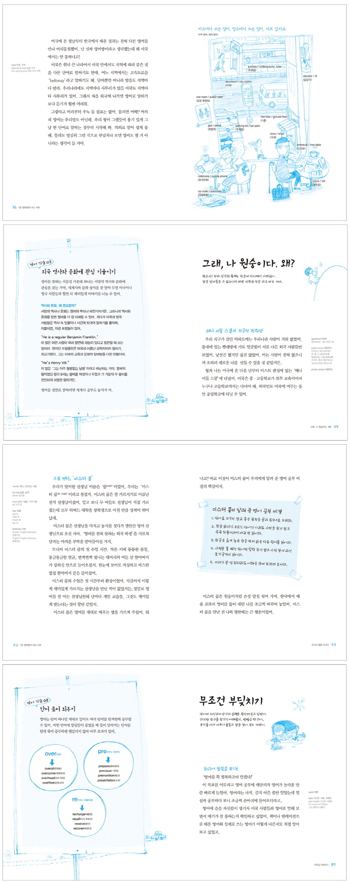 ³× »ì ¶§ºÎÅÍ ¿µ¾î Á¶±â ±³À°À» ¹Þ°í ¡®¿µÀ硯 ¼Ò¸® µè´ø ³ª, ¹Ì±¹¿¡ ù¹ßÀ» µé¿©³õÀÚ¸¶ÀÚ ÀÔÀÌ µü ¾ó¾îºÙ°í ¸»¾Ò¾î. µµ´ëü ¿Ö? 2Àå ¿µ¾î²ÎÀÇ ¿µ¾î µµÀü±â ¿µ¾î¶ó´Â ³à¼®, °øºÎ¸¦ ÇØµµ ÀâÈ÷Áö°¡ ¾Ê¾Æ. ÇÏÁö¸¸ ÀÌ´ë·Î Æ÷±âÇÒ ¼ö ¾ø¾î. Å«¸¾ ¸Ô°í ±³Àå ¼±»ý´Ôµµ ¸»¸®´Â ¡®¿µ¹®ÇÐ ¼ö¾÷¡¯¿¡ µµÀüÇߴµ¥¡¦¡¦. ±âÀûÀÌ ÀϾ¾î! 3Àå ¿µ¾î¯ÀÇ Áö¸§±æ, ±Û·Î¹ú ¿µ¾î À¯·´ »ç¶÷µé°ú ÇÔ²²Çϴ ȸÀÇ ½Ã°£. ³ À¯Ä¡¿ø¿¡ ¿Â ÁÙ ¾Ë¾Ò¾î. ¸ðµÎµé ¾ÆÀ̵éÀÌ ¾µ ¹ýÇÑ ½¬¿î ´Ü¾î·Î ¾ê±â¸¦ ÁÖ°í¹Þ´Â °Å¾ß. ¼¼°è¿¡¼ ÅëÇÏ´Â ¿µ¾î´Â ¹Ì±¹ ¿µ¾î, ¿µ±¹ ¿µ¾îµµ ¾Æ´Ñ ¡®±Û·Î¹ú ¿µ¾î¡¯¿´¾î. ÃâÆÇ»ç ¼Æò¿µ¾î, Áö°Ü¿ö Á¤¸» Áö°Ü¿ö!