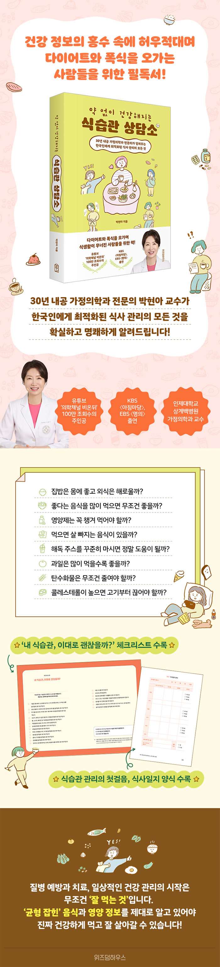 À߸øµÈ °Ç° Áö½ÄÀÌ ³ª»Û ½À°üÀ¸·Î À̾îÁ® º´À» ¸¸µé°í, Á¦´ë·Î µÈ °Ç° Áö½ÄÀÌ ÁÁÀº ½À°üÀ¸·Î À̾îÁ® °Ç°ÇÑ »ýȰÀ» ¸¸µç´Ù´Â ¹ÏÀ½À¸·Î, »ó¾÷¼ºÀ» ¹èÁ¦ÇÑ °ËÁõµÈ °Ç° Á¤º¸¸¦ ´©±¸³ª ¾Ë±â ½±°Ô ¾Ë¸®±â À§ÇØ ³ë·ÂÇϰí ÀÖ´Ù. KBS ¡´¾ÆÄ§¸¶´ç¡µ ¡´¹«¾ùÀÌµç ¹°¾îº¸¼¼¿ä¡µ ¡´»ý·Îº´»çÀÇ ºñ¹Ð¡µ, EBS ¡´¸íÀÇ¡µ µî ´Ù¾çÇÑ °Ç° Á¤º¸ TV ÇÁ·Î±×·¥¿¡ Ãâ¿¬ÇØ¿Ô´Ù. 2020³âºÎÅÍ À¯Æ©ºê ä³Î ¡®ÀÇÇÐä³Î ºñ¿ÂµÚ¡¯¿¡¼ ¡®¿Ô´Ù, ¹Ú±³¼ö!¡¯ ¶óÀÌºê ¹æ¼ÛÀ» ²ÙÁØÈ÷ ÁøÇàÇÏ¸ç ¸¹Àº À̵éÀÇ °Ç° ±Ã±ÝÁõÀ» ¼Ó ½Ã¿øÇÏ°Ô Ç®¾îÁÖ°í ÀÖ´Ù. |
