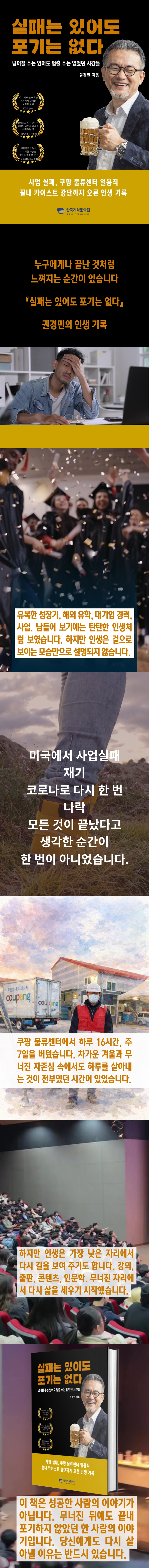 Ã¥¼Ò°³¡º½ÇÆÐ´Â À־ Æ÷±â´Â ¾ø´Ù¡»´Â Àß³ª°¡´ø ÀλýÀÌ ¹«³ÊÁø µÚ, ³¡³» ´Ù½Ã ÀϾ ÇÑ »ç¶÷ÀÇ °·ÄÇÑ ½ÇÈÀÔ´Ï´Ù. À¯º¹ÇÑ È¯°æ¿¡¼ ¼ºÀåÇϰí, ÇØ¿Ü À¯Çаú ´ë±â¾÷ °æ·ÂÀ» °ÅÃÄ, »ç¾÷°¡·Î ¼º°øÀÇ Á¤Á¡±îÁö ¿Ã¶ú´ø ÀúÀÚ´Â ¹Ì±¹ ¿Ü½Ä»ç¾÷ ½ÇÆÐ¿Í Äڷγª19·Î ÀÎÇÑ ºØ±«¸¦ ¿¬ÀÌ¾î °ÞÀ¸¸ç »îÀÇ ¹Ø¹Ù´Ú±îÁö Ãß¶ôÇÕ´Ï´Ù. ÇѶ§´Â ¸ðµç °ÍÀ» ÀÒ°í Àý¸Á ¼Ó¿¡¼ ½º½º·Î »îÀ» Æ÷±âÇÏ°í ½ÍÀ» ¸¸Å ±íÀº ¾îµÒÀ» Áö³ª±âµµ Çß½À´Ï´Ù.