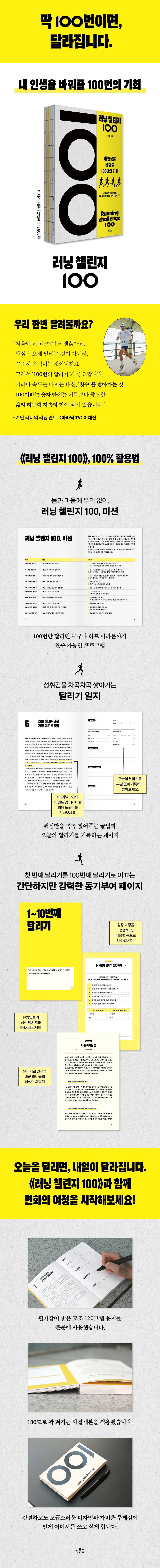 ¡°ÇÏ·ç¶óµµ ½¬¸é Èûµé°Ô ÇÑ °¢¿À°¡ ¹«³ÊÁú °Í °°¾Æ¼¡¦¡±, ¡°¾îÁ¦ ÇßÀ¸´Ï±î ¿À´Ã µÎ ¹è·Î ´Þ·Á¾ßÁö¡¦¡±. ÀÌ·± »ý°¢ÀÌ ÇǷθ¦ ½×ÀÌ°Ô Çϰí, ºÎ»óÀ» ºÎ¸¥´Ù. ÈÞ½ÄÀº ¼±ÅÃÀÌ ¾Æ´Ï¶ó Çʼö´Ù. Àß ½¬¾î¾ß ´õ ¸Ö¸®, ´õ ¿À·¡ ´Þ¸± ¼ö ÀÖ´Ù. ±×·¯´Ï ÁËÃ¥°¨À» °®Áö ¸»°í ´ç´çÇÏ°Ô ½¬ÀÚ. ³ª´Â ±×µ¿¾È °ÝÀÏ ´Þ¸®±â¸¦ ÃßÃµÇØ¿Ô´Ù. ¸¸¾à ÀÌÆ² ¿¬¼Ó ´Þ·È´Ù¸é Àû¾îµµ 3ÀÏ Â÷¿¡´Â ²À ½¬¾îÁÖ±æ ±ÇÇÑ´Ù. _p.46 ´Þ¸®±â¸¦ ½À°üÀ¸·Î ¸¸µé°í ½Í´Ù¸é, ´Þ¸®±â ÁÁÀº ȯ°æÀ» ±¸ÃàÇÏ´Â °ÍÀÌ °¡Àå È®½ÇÇÑ ¹æ¹ýÀÌ´Ù. ´Þ¸®±â¸¦ ¹æÇØÇÏ´Â ¿ä¼ÒµéÀ» ÁÙÀ̰í, ÃÖ´ëÇÑ º° °í¹Î ¾øÀÌ ¹ÛÀ¸·Î ³ª°¥ ¼ö ÀÖ´Â Á¶°ÇÀ» ¸¸µé¾î³õÀ¸¸é ´õ ÀÌ»ó ¡®ÀÇÁö¡¯¸¦ µ¿¿øÇÏÁö ¾Ê¾Æµµ ÀÚ¿¬½º·´°Ô ´Þ¸®°Ô µÈ´Ù. ´Þ¸®±â°¡ Èûµé°Ô¸¸ ´À²¸Áø´Ù¸é, ÀÚ½ÅÀÇ ÀÇÁö¸¦ Å¿Çϱâ Àü¿¡ ȯ°æÀ» ¸ÕÀú »ìÆìº¸ÀÚ. ´Þ¸®±â ½¬¿î ȯ°æÀ» ¸¸µé¸é, ´Þ¸®±â´Â ÀúÀý·Î À̾îÁø´Ù. _p.58 ¡°500m¸¸ ´õ¡±, ¡°1ºÐ¸¸ ´õ¡± °°Àº ¡®ÀÛÀº¡¯ ¸ñÇ¥¸¦ ¼³Á¤ÇÏ°í °Å±â¿¡ ÁýÁßÇØ ´Þ·Áº¸ÀÚ. Å« ¸ñÇ¥¸¦ Àâ°í ´Þ¸®¸é ÇǷθ¦ ´À³¢´Â Áï½Ã Æ÷±âÇÏ°í ½Í¾îÁöÁö¸¸, ÀÛÀº ¸ñÇ¥¸¦ ¼³Á¤ÇÏ¸é ´ú ºÎ´ã½º·´´Ù. ³ª´Â ¡°Àú ¾Õ Àüº¿´ë±îÁö¸¸ ´õ¡±, ¡°Àú±â º¸ÀÌ´Â Å« ³ª¹«±îÁö¸¸ ´õ¡± ÀÌ·± ½ÄÀ¸·Î ÁöÇüÁö¹°À» ÀÌ¿ëÇϰï ÇÑ´Ù. ±×·¸°Ô ÇÑ °ÉÀ½ ÇÑ °ÉÀ½ ³ª¾Æ°¡¸é, ¾î´À»õ ÈûÀ» ȸº¹ÇÏ°í ´Þ·Á ³ª°¡´Â ÀÚ½ÅÀ» ¸¸³ª°Ô µÈ´Ù. ÀÌ·± ¼ö¸¹Àº ¹Ýº¹ÀÇ °á°ú°¡ ³ª¸¦ ¼ºÀå½ÃŲ´Ù. _p.70 ¸¸¾à ¿©·¯ºÐÀÌ 5km¸¦ ºñ±³Àû Æí¾ÈÇÏ°Ô ´Þ¸± ¼ö Àִ ü·ÂÀÌ µÇ¾ú´Ù¸é, Á¡ÁøÀûÀ¸·Î 10km¿¡ µµÀüÇØº¸ÀÚ. ¾Æ·¡´Â 10km¿¡ µµÀüÇÏ´Â ½ÃÁ¡¿¡¼ ³»°¡ ÅåÅåÈ÷ È¿°ú¸¦ ºÃ´ø ¹æ¹ýÀÌ´Ù. ù°, ÁÖ°£ ÈÆ·Ã Ƚ¼ö¸¦ ´Ã·Áº¸ÀÚ. ¿¹¸¦ µé¾î, ÁÖ 3ȸ¿¡¼ 4ȸ·Î ´Ã¸®´Â °ÍÀÌ´Ù. ±×·¸Áö¸¸ ÃÖ´ë 6ÀÏÀ» ³Ñ±âÁö ¾Êµµ·Ï ÁÖÀÇÇÑ´Ù. Ƚ¼ö°¡ ´Ã¸é¼ ÀÚ¿¬½º·´°Ô ¿ù ¸¶Àϸ®Áö°¡ ½×ÀÌ°í ±×¸¸Å Çѹø¿¡ ´Þ¸®´Â °Å¸®°¡ Á¡Á¡ ´Ã °ÍÀÌ´Ù. _p.148 ¼Ò·Î°¡ ¿ùµç È£¼ý°¡¿¡¼ ÀÚ¿¬°ú ÇÔ²² »ì¾Æ°¡¸ç ¹è¿î ´Ü¼øÇÔÀÇ ÈûÀ» ³ª´Â µµ½Ã ÇѺ¹ÆÇ¿¡¼ ±ú´Þ¾Æ¾ß¸¸ ÇÑ´Ù. ½£À¸·Î µé¾î°¥ ¿ë±â´Â ¾øÁö¸¸, ³ª¸¸ÀÇ ¹æ½ÄÀ¸·Î ¸Ó¸´¼ÓÀ» ºñ¿ö³¾ ÇÊ¿ä´Â ÀÖ¾ú´Ù. ¡°»îÀ» ´Ü¼øÇÏ°Ô ¸¸µé¸é, »îÀÇ ¹ýÄ¢µéµµ ´Ü¼øÇØÁø´Ù.¡± ´Þ¸± ¶§¸¶´Ù ÀÌ ¸»À» ¶°¿Ã¸°´Ù. ´Þ¸®´Â µ¿¾È¿£ ¸ñÇ¥µµ, ¸ñÀûÁöµµ Áß¿äÇÏÁö ¾Ê´Ù. ¿ÀÁ÷ ³»°¡ ³»µó´Â ±× ¼ø°£¸¸ Á¸ÀçÇÒ »ÓÀÌ´Ù. _p.162 ½½·³ÇÁ´Â ÀÇ¿åÀÌ »ç¶óÁ®¼ ´Þ¸®±â ÀÚü°¡ ºÎ´ã½º·¯¿ï ¶§ ã¾Æ¿Â´Ù. ÀÌ·± ½Ã±â¿¡´Â ¡®¾ïÁö·Î¶óµµ ¶Ù¾î¾ß Çϳª¡¯¶ó´Â »ý°¢ÀÌ µé±â ½±´Ù. ±×·±µ¥ ´Þ¸®±â ÀÚüº¸´Ù´Â ÀÏ»ó ¼Ó ·çƾÀ» Á¤ºñÇÏ´Â °ÍÀÌ ÈξÀ ´õ È¿°úÀûÀÏ ¶§°¡ ¸¹´Ù. ½½·³ÇÁ¸¦ ±Øº¹ÇÏ´Â ÇÙ½ÉÀº ¡®´Þ¸± ¼ö ÀÖ´Â È帧¡¯À» ´Ù½Ã ¸¸µå´Â °ÍÀÌ´Ù. ±× È帧Àº ·¯´×È ²öÀ» ¸Å±â ÀüºÎÅÍ ÀÌ¹Ì ½ÃÀ۵ȴÙ. _p.268 ÃâÆÇ»ç ¼Æò¡°100¹øÀÇ ´Þ¸®±â°¡ ³¡³¯ ÁîÀ½,