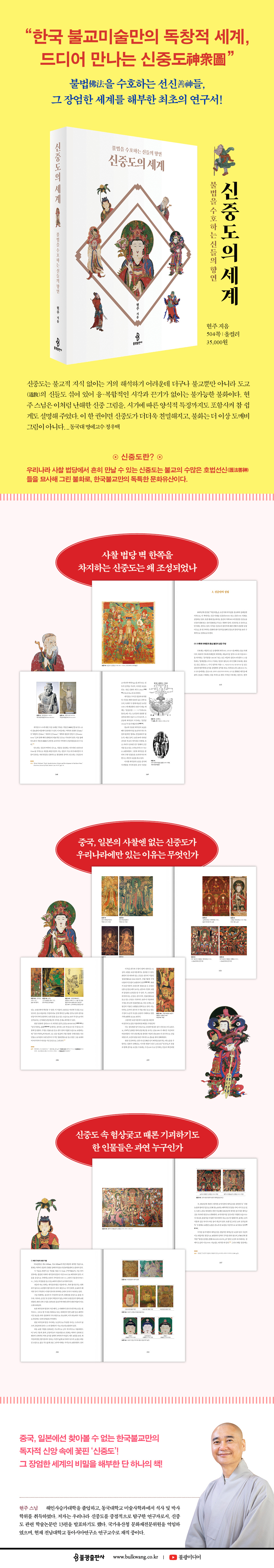 ½ÅÁßµµ´Â ºÒ¹ý(ÝÖÛö)À» ¼öÈ£ÇÏ´Â ¼±½Å(à¼ãê)µéÀ» ±×¸° ºÒÈ·Î, Çѱ¹ºÒ±³ÀÇ ÀÇ·Ê¿Í ½Å¾ÓÀº ¹°·Ð ¹Î°£½Å¾Ó°ú µµ±³Àû ¿ä¼Ò±îÁö À¶ÇÕµÈ µ¶Ã¢ÀûÀÎ ¹®ÈÀ¯»êÀÌ´Ù. ±×·¯³ª ´ëÁßµéÀº Àý¿¡¼ ½ÅÁßµµ¸¦ ¸¶ÁÖÇϸç ÈçÈ÷ ¹«¼ÓÈ(ÙãáÔûþ)¸¦ ¶°¿Ã¸®°ï ÇÑ´Ù. ÇÏÁö¸¸ ÀÌ Ã¥Àº ½ÅÁßµµÀÇ ¿ª»çÀû ±â¿ø°ú Àü°³, µµ»óÀÇ ºñ¹ÐÀ» ÇØºÎÇÏ¿©, ³¸¼³°í ±â¹¦ÇØ º¸¿´´ø ºÒȸ¦ Çѱ¹ºÒ±³°¡ °£Á÷ÇÑ ´ëÇ¥ ¹®ÈÀ¯»êÀ¸·Î »õ·Ó°Ô µå·¯³½´Ù.