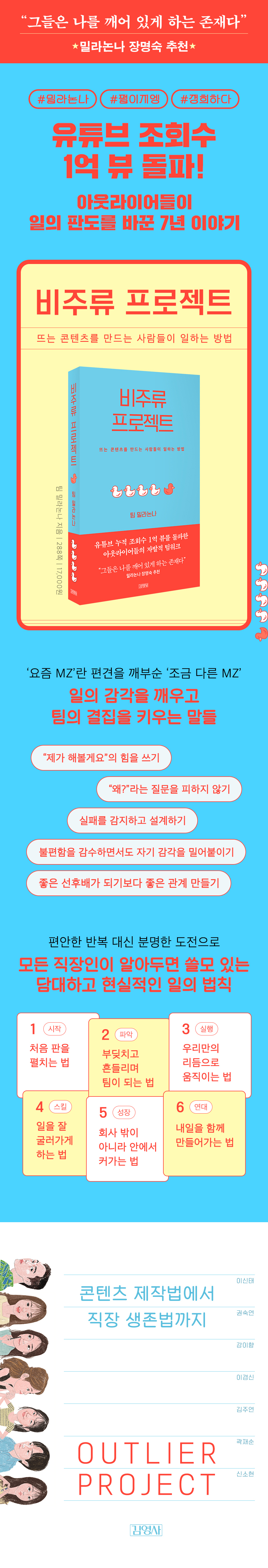 ºñÁÖ·ù¿¡¼ ÁÖ·ù·Î, 0¿¡¼ ´©Àû Á¶È¸¼ö 1¾ï 4õ¸¸ ºä¸¦ µ¹ÆÄÇϱâ±îÁö 7³âÀÇ À̾߱â. ÄÜÅÙÃ÷ÀÇ ÆÇµµ¸¦ ¹Ù²ã¹ö¸° ¡®ÆÀ ¹Ð¶ó³í³ª¡¯´Â ¾î¶»°Ô ź»ýÇÏ°í ¼ºÀåÇߴ°¡. ¸ðµç Á÷ÀåÀÎÀÌ ¾Ë¾ÆµÎ¸é ¾µ¸ð ÀÖ´Â ´ã´ëÇϰí Çö½ÇÀûÀÎ ÀÏÀÇ ¹ýÄ¢ÀÌ ´ã±ä Ã¥ ¡¶ºñÁÖ·ù ÇÁ·ÎÁ§Æ®¡·°¡ ±è¿µ»ç¿¡¼ Ãâ°£µÇ¾ú´Ù.