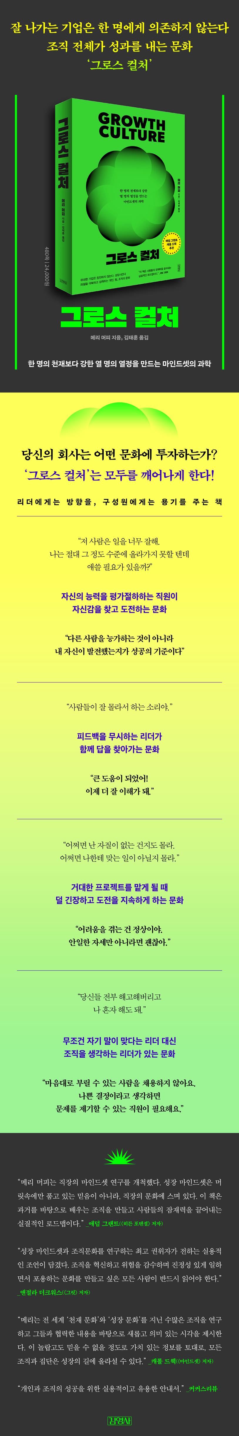 ¼ö½Ê ³â°£ Á¶Á÷ ¿¬±¸´Â ¡®°³ÀÎÀÇ ´É·Â¡¯¿¡ °ü½ÉÀÌ ÁýÁߵǾî ÀÖ¾ú´Ù. ´É·ÂÀÌ ¡®°íÁ¤¡¯µÇ¾î ÀÖ´Ù´Â ¹ÏÀ½Àº °³ÀÎÀÇ ½Ç¼ö¸¦ ´É·Â ºÎÁ· Å¿À¸·Î µ¹¸°´Ù. ´ëôÁ¡¿¡ ÀÖ´Â ¡®¼ºÀ塯 ¸¶Àεå¼ÂÀ» ÀåÂøÇÑ À̵éÀÇ ¼ºÃë°¡ Å©´Ù´Â °ÍÀº ³Î¸® ¾Ë·ÁÁø »ç½ÇÀÌ´Ù. ¡¶±×·Î½º ÄÃó¡·(¿øÁ¦: CULTURES OF GROWTH)´Â °³ÀÎÀÌ ¾Æ´Ï¶ó Á¶Á÷¿¡ ÃÊÁ¡À» ¸ÂÃç, Á¶Á÷ ÀÚüµµ ¸¶Àεå¼ÂÀ» °¡Áú ¼ö ÀÖ°í ±×°ÍÀÌ ±¸¼º¿øÀÇ ¸¶Àεå¼Â¿¡ Áö´ëÇÑ ¿µÇâÀ» ³¢Ä£´Ù´Â »õ·Î¿î »ç½ÇÀ» º¸¿©ÁØ´Ù. ÀúÀÚ ¸Þ¸® ¸ÓÇÇ´Â 10³â °¡±îÀÌ ¸¶ÀÌÅ©·Î¼ÒÇÁÆ®¸¦ ºñ·ÔÇØ ¼ö¹é °³ ±â¾÷À» ºÐ¼®Çϰí ÄÁ¼³ÆÃÇÏ¸é¼ ¼ºÀå ¸¶Àεå¼ÂÀ» Á¤Ã¥°ú °üÇà¿¡ ¹Ý¿µÇÑ Á¶Á÷ÀÇ ¼º°ú¸¦ Áõ¸íÇß´Ù. ¼ºÀå ¸¶Àεå¼ÂÀ» ¹®È·Î üÈÇÑ Á¶Á÷ÀÇ ±¸¼º¿øµéÀº °ÇÑ µ¿±â¿Í ÀÇ¿åÀ» Áö´Ï°í, ´õ ¸¹ÀÌ ¼·Î¸¦ Áö¿øÇϸç, âÀÇÀûÀ̰í Çõ½ÅÀûÀ̾ú´Ù. ¼·Î¸¦ ¼ÓÀ̰ųª °Ç¼ºÀ¸·Î ÀÏÇϰųª ¼·ÎÀÇ ¾ÆÀ̵ð¾î¸¦ ÈÉÄ¥ È®·üÀÌ Àû¾ú´Ù.