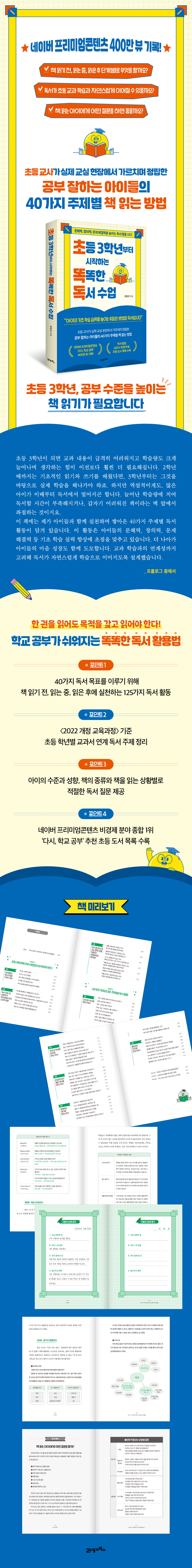 ³×À̹ö ÇÁ¸®¹Ì¾öÄÜÅÙÃ÷ Àι® 1À§, ºñ°æÁ¦ Á¾ÇÕ 1À§ ä³Î ¡®´Ù½Ã, Çб³ °øºÎ¡¯¿¡¼ ´©Àû Á¶È¸ ¼ö 400¸¸ ºä ÀÌ»óÀ» ±â·ÏÇϸç Å« Àα⸦ ¾òÀº µ¶¼ ÀÚ·áµéµµ ¼ö·ÏÇß´Ù. ¸ÕÀú Ã¥ Àбâ Àü, Àд Áß, ÀÐÀº ÈÄ µ¶¼ ´Ü°èº°·Î ¾ÆÀÌ¿¡°Ô ´øÁö´Â Áú¹® ¸ñ·ÏÀ» Á¦°øÇÑ´Ù. ¹®ÇÐ, ºñ¹®ÇÐ, ÁÖÁ¦º°, »óȲº°, ´À³¦°ú °¨Á¤, ¼ºÂû, »ý°¢ È®Àå µî Ä«Å×°í¸®¸¦ ±¸ºÐÇØ ´Ù¾çÇÑ µ¶¼ »óȲ¿¡¼ ¾ÆÀÌÀÇ »óÅ¿¡ µü ¸Â´Â Áú¹®À» ÇÒ ¼ö ÀÖµµ·Ï Çß´Ù. ¶ÇÇÑ »çȸ¤ý°úÇÐ °ú¸ñÀÇ Çг⺰ ³»¿ë ü°èÇ¥¸¦ ¼ö·ÏÇØ ±³°ú¼¿Í ¿¬°áµÈ µ¶¼ ÁÖÁ¦¸¦ ¼±ÅÃÇÒ ¼ö ÀÖµµ·Ï µµ¿ÍÁØ´Ù. ¸¶Áö¸·À¸·Î, Ã¥¿¡¼ ¼³¸íÇÑ Å°¿öµåº° Ãßõ µµ¼ ¸ñ·ÏÀ» Á¤¸®ÇÔÀ¸·Î½á Ȱ¿ëµµ¸¦ ³ô¿´´Ù.