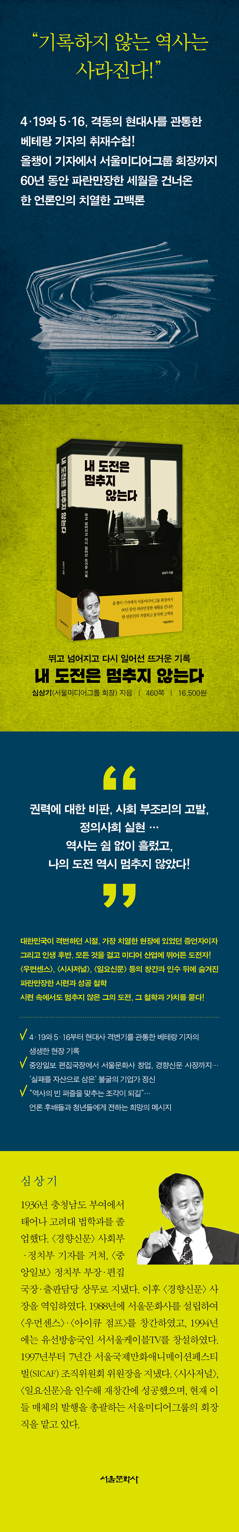 °Ýµ¿ÀÇ Çö´ë»ç¸¦ Åë°úÇÑ ÇÑ ¾ð·ÐÀÎÀÇ À°¼ºÀÌ ´ã±ä ÀÌ Ã¥Àº ´ÜÁö °ú°Å¸¦ ȸ»óÇÏ´Â ±â·ÏÀÌ ¾Æ´Ï´Ù. ¿ÀÈ÷·Á ¿À´ÃÀ» »ì¾Æ°¡´Â À̵鿡°Ô º¸³»´Â ÀÀ¿øÀÇ ¸Þ½ÃÁö´Ù. ÁÂÀýÀº ³¡ÀÌ ¾Æ´Ï¶ó ÀüȯÁ¡À̸ç, ½ÇÆÐ´Â ¶Ç ´Ù¸¥ Ãâ¹ß¼±À̶ó´Â °Í. µµÀüÀº Ưº°ÇÑ »ç¶÷ÀÇ ÀüÀ¯¹°ÀÌ ¾Æ´Ï¶ó, »ì¾Æ ÀÖ´Ù´Â Áõ°Å´Ù.