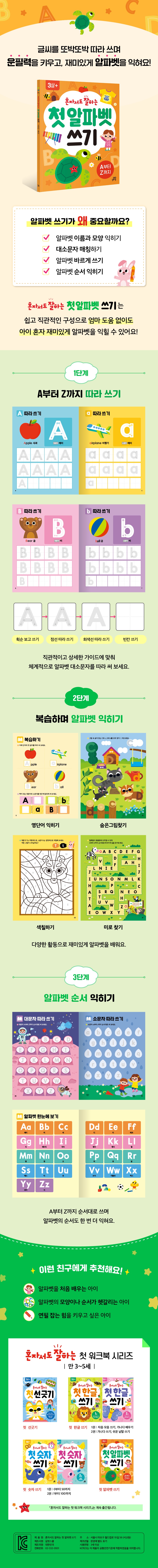 ¾ËÆÄºªÀº ¿µ¾î ÇнÀÀÇ °¡Àå ±âÃÊ¿¹¿ä. ¡ºÈ¥ÀÚ¼µµ ÀßÇϴ ù ¾ËÆÄºª ¾²±â¡»´Â ¿µ¾î¸¦ óÀ½ ¹è¿ì´Â ¾ÆÀ̵éÀ» À§ÇØ ´Ü°èÀûÀ¸·Î Ȱµ¿À» ±¸¼ºÇß¾î¿ä. AºÎÅÍ Z±îÁö ´ë¼Ò¹®ÀÚ¸¦ Â÷±ÙÂ÷±Ù µû¶ó ¾²¸ç ¾ËÆÄºªÀ» ÀÍÈ÷¸é ¿µ¾î °øºÎ¿¡ ÀڽۨÀÌ »ý±æ °Å¿¹¿ä.