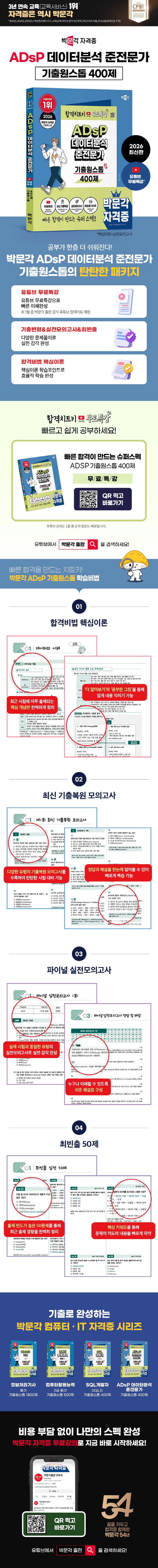 ÃâÆÇ»ç ¼Æò¢ß¹Ú¹®°¢ ÃâÆÇ¿¡¼ ¡º2026 ¹Ú¹®°¢ ADsP µ¥ÀÌÅͺм® ÁØÀü¹®°¡ ±âÃâ¿ø½ºÅé 400Á¦+¹«·áƯ°¡» ±³Àç°¡ Ãâ°£µÇ¾ú½À´Ï´Ù.