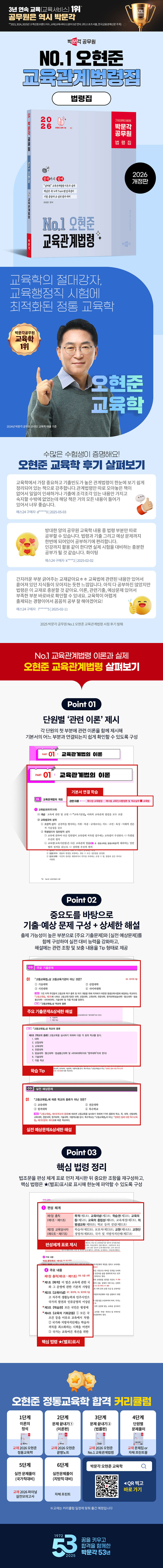 Ã¥¼Ò°³¡º2026 ¹Ú¹®°¢ °ø¹«¿ø No.1 ¿ÀÇöÁØ ±³À°°ü°è¹ý·É¡»Àº ±³À°°ü°è¹ý·É°ú ±âÃâ¹®Á¦, ¿¹»ó¹®Á¦¸¦ ÇÑ ±Ç¿¡ ÃѸÁ¶óÇÑ ¹ý·ÉÁýÀÔ´Ï´Ù. ÀÌ Ã¥ÀÇ ÁÖ¿ä Æ¯Â¡Àº ´ÙÀ½°ú °°½À´Ï´Ù.