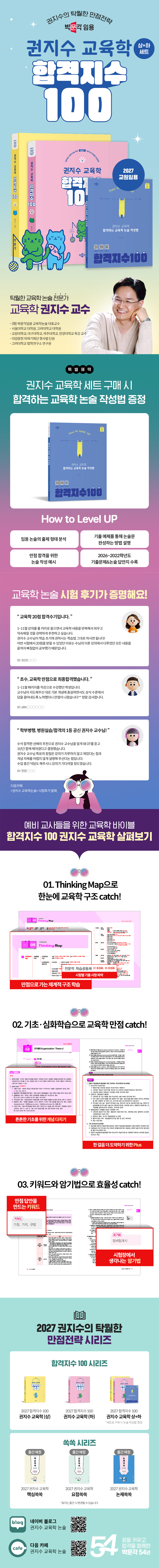 Ã¥¼Ò°³¡¶2027 ÇÕ°ÝÁö¼ö 100 ±ÇÁö¼ö ±³À°ÇÐ »ó+ÇÏ ¼¼Æ®¡·´Â 2027Çг⵵ ±³¿ø ÀÓ¿ë ±³À°ÇÐ ³í¼ú ½ÃÇèÀ» ¿Ïº®ÇÏ°Ô ´ëºñÇÒ ¼ö ÀÖ´Â ±³À°ÇÐ ±âº»¼ÀÌ´Ù. ±³À°ÇÐÀÇ ¹æ´ëÇÑ ³»¿ë Áß ±³À°ÇÐ ³í¼ú ½ÃÇè¿¡ ÇÊ¿äÇÑ Çٽɸ¸ ¾ÐÃàÀûÀ¸·Î Á¦½ÃÇÏ¿© È¿À²¼ºÀ» ³ô¿´À¸¸ç, °¢ ºÐ°ú Çй® ¿µ¿ªº°·Î Thinking MapÀ» ¼ö·ÏÇÏ¿© ±³À°ÇÐÀÇ ±¸Á¶¸¦ źźÇÏ°Ô ÀâÀ» ¼ö ÀÖµµ·Ï ±¸¼ºÇÏ¿´´Ù. ¶ÇÇÑ ÀïÁ¡º°·Î ±âÃâ »çÇ×À» Ç¥½ÃÇØ ÃâÁ¦ ºñÁßÀ» È®ÀÎÇϸç ÇнÀÇÒ ¼ö ÀÖµµ·Ï ÇÏ¿´´Ù. ÀÌ ¹Û¿¡µµ ÀúÀÚÀÇ ³ëÇϿ찡 ´ã±ä ±â¾ï¿¡ ¿À·¡ ³²´Â ¾Ï±â¹ý°ú ³í¼ú¿¡ ÇʼöÀûÀΠŰ¿öµå´Â ¼öÇè»ýµéÀÌ ½Ã°£°ú ³ë·ÂÀ» Àý°¨ÇÏ¸é¼ ÃÖ´ëÀÇ È¿°ú¸¦ °ÅµÑ ¼ö ÀÖµµ·Ï µµ¿ï °ÍÀÌ´Ù. ¿©±â¿¡ ºÎ·ÏÀ¸·Î ±³À°ÇÐ ³í¼ú ÀÛ¼º¿¡ ÇʼöÀûÀÎ ³»¿ëÀ» ½ÇÀº ¡¶ÇÕ°ÝÇÏ´Â ±³À°ÇÐ ³í¼ú ÀÛ¼º¹ý¡·±îÁö Æ÷ÇԵǾî ÀÖ´Ù.