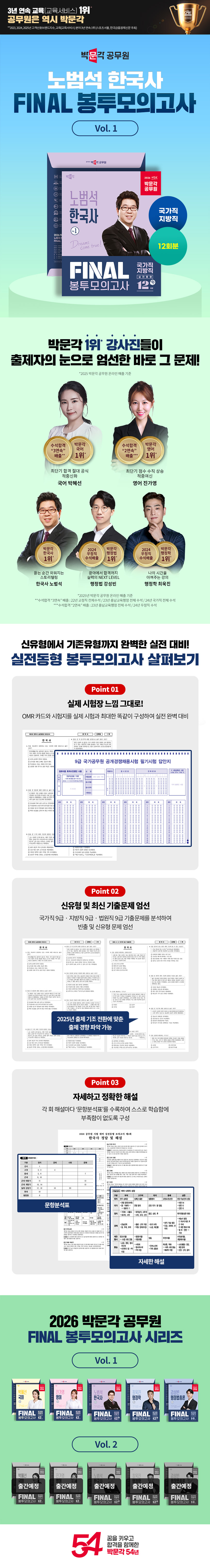 ¡´2026 ¹Ú¹®°¢ °ø¹«¿ø ³ë¹ü¼® Çѱ¹»ç FINAL ºÀÅõ¸ðÀǰí»ç Vol.1¡µÀº ½ÃÇè Á÷Àü Çѱ¹»ç ÃÖÁ¾ ¸¶¹«¸®¸¦ À§ÇØ ²À ÇÊ¿äÇÑ Çѱ¹»ç ½ÇÀüµ¿Çü ¸ðÀǰí»çÀÔ´Ï´Ù.