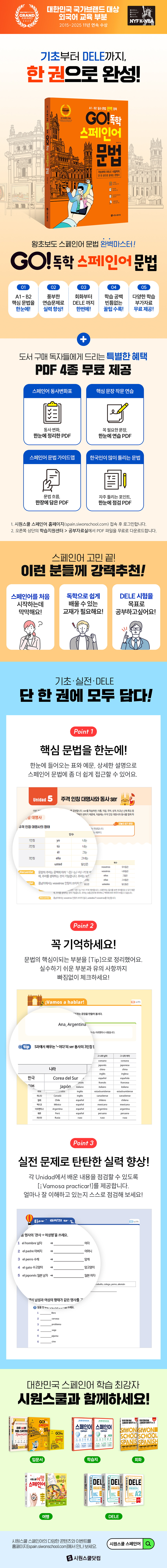 ¡ºGO! µ¶ÇÐ ½ºÆäÀÎ¾î ¹®¹ý¡»Àº ½ºÆäÀÎ¾î ¹®¹ý ÇнÀ¿¡ µµ¿òÀÌ µÇ´Â ´Ù¾çÇÑ ÀڷḦ Á¦°øÇÕ´Ï´Ù. Á÷Á¢ ½á º¸°í ¾Ï±âÇÒ ¼ö ÀÖ´Â ÇÙ½É ¹®Àå ÀÛ¹® ¿¬½À PDF, ½ºÆäÀξî ÇнÀ¿¡ ²À ÇÊ¿äÇÑ µ¿»ç º¯ÈÇ¥ PDF, Çѱ¹ÀÎÀÌ ÀÚÁÖ Æ²¸®´Â ¹®¹ý PDF, ½ºÆäÀÎ¾î ¹®¹ý °¡À̵å MAP PDF±îÁö ÃÑ 4Á¾ÀÇ PDF¸¦ ¹«·á·Î ´Ù¿î·Îµå ¹ÞÀ» ¼ö ÀÖ½À´Ï´Ù. ±×¸®°í À¯·á·Î Á¦°øÇÏ´Â ÀúÀÚ Á÷° µ¿¿µ»ó °Àǵµ ÇÔ²² ÀÌ¿ëÇÑ´Ù¸é, ´©±¸³ª ½±°Ô ½ºÆäÀÎ¾î ¹®¹ýÀ» ¸¶½ºÅÍÇÒ ¼ö ÀÖ½À´Ï´Ù!