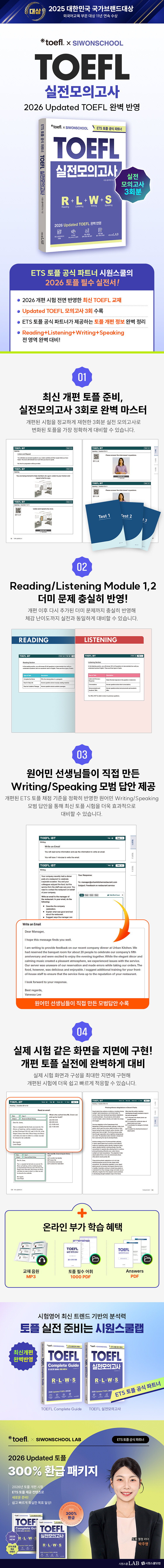 01. 2026³â 1¿ù ½ÃÇè °³Æí ³»¿ëÀ» ¿Ïº® ¹Ý¿µÇÑ ÃֽŠTOEFL ±³Àç!