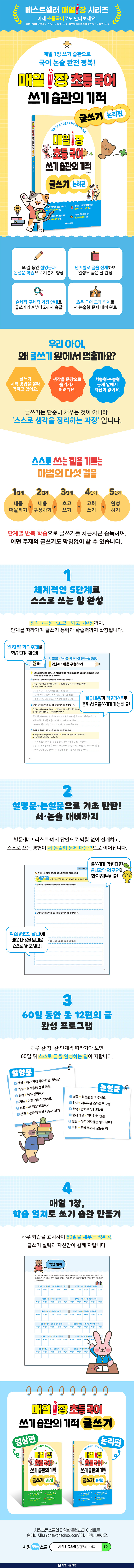 ¾ÆÀ̵éÀÇ ¾²±â ´É·ÂÀ» Ű¿ì´Â 5´Ü°è °úÁ¤À» Á¦½ÃÇÏ¿© ¾ÆÀ̰¡ ½º½º·Î 1ÆíÀÇ ±ÛÀ» ¿Ï¼ºÇÒ ¼ö ÀÖ½À´Ï´Ù. ÇнÀÀÚÀÇ °æÇè°ú »ý°¢ÀÌ ±Û·Î ¿¬°áµÇµµ·Ï ±¸¼ºÇßÀ¸¹Ç·Î ¸Å ´Ü°è¸¦ Â÷±ÙÂ÷±Ù ¹â¾Æ ³ª°¡¸é ÀÚ¿¬½º·¹ ±Û¾²±â ´É·ÂÀÌ Ä¿Á®¿ä. ¸ÅÀÏ 1Àå ±Û¾²±â´Â Àüü Â÷½Ã¸¦ ÀÌ È帧¿¡ ¸ÂÃç ±¸¼ºÇß¾î¿ä. ÇÑ ¹ø¿¡ Àß ¾²·Á Çϱ⺸´Ù ´Ü°è¸¶´Ù ÇÑ °ÉÀ½¾¿ ³ª¾Æ°¡´Â °æÇèÀÌ ±Û¾²±â ´É·ÂÀ» Ű¿ó´Ï´Ù.