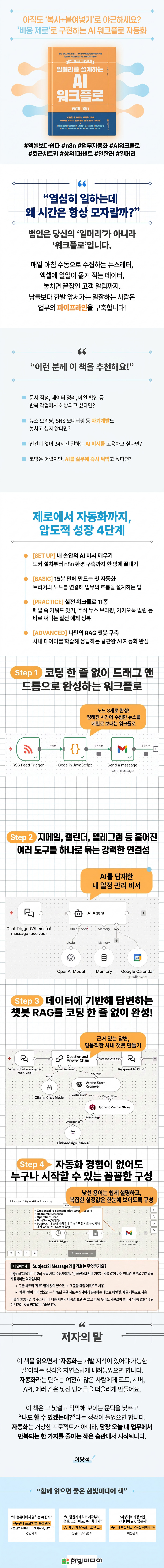 ¸ÅÀÏ ¾ÆÄ§ ¼öµ¿À¸·Î º¸³»´Â ¸ÞÀÏ, ¿¢¼¿°ú µå¶óÀ̺긦 ¿À°¡´Â ÆÄÀÏ Á¤¸®, ³õÄ¡¸é ¾È µÇ´Â Ä«Åå ¾Ë¸²±îÁö¡¦ Ȥ½Ã ¾ÆÁ÷µµ 'º¹»ç+ºÙ¿©³Ö±â'¿¡ ±ÍÇÑ ½Ã°£À» ¾²°í °è½Å°¡¿ä? ÀÌ Ã¥Àº ÄÚµù ÇÑ ÁÙ ¸ô¶óµµ n8nÀ̶ó´Â ¸¶¹ý °°Àº µµ±¸¸¦ Ȱ¿ëÇØ ³ª¸¸ÀÇ '¹«·á AI ÆÀ'À» ¸¸µå´Â ¹ýÀ» ¾Ë·Áµå¸³´Ï´Ù. ´Ü¼øÈ÷ ÅøÀ» ¹è¿ì´Â °ÍÀ» ³Ñ¾î, ³» ÀÏÀÇ È帧À» ¼³°èÇϰí ÀÚµ¿ÈÇÏ´Â '»óÀ§ 1%ÀÇ ÀϸӸ®'¸¦ ÀåÂøÇØ º¸¼¼¿ä. Åð±Ù ½Ã°£Àº »¡¶óÁö°í, ¼º°ú´Â ¾ÐµµÀûÀ¸·Î ´Þ¶óÁú °ÍÀÔ´Ï´Ù.