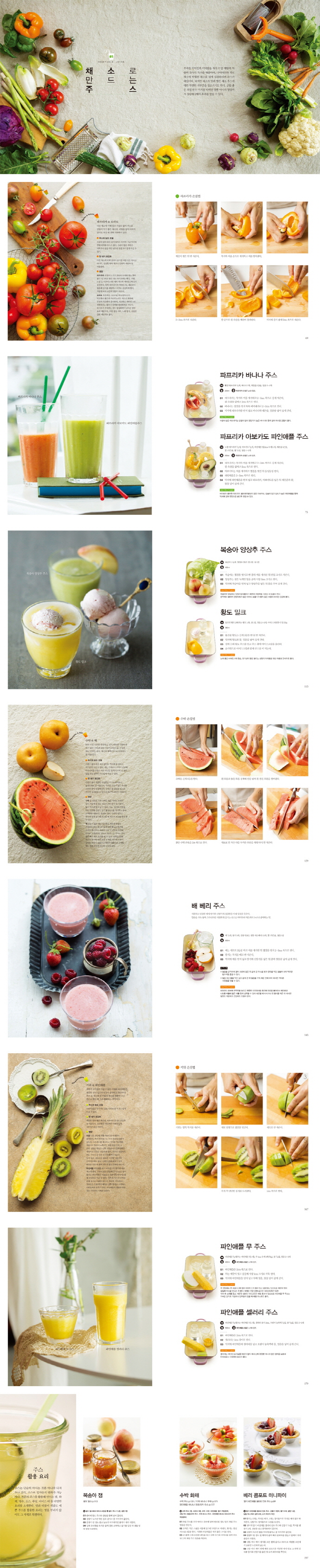 ¡ºÁÖ½º Juice¡»´Â Á¦Ã¶ °úÀϰú ä¼Ò¿¡ »ç°èÀý dz¼ºÇÑ Àç·á¸¦ ´õÇØ ´©±¸³ª ½±°í ¸ÀÀÖ°Ô ¸¸µé ¼ö ÀÖ´Â °Ç° ÁÖ½º ·¹½ÃÇÇ 100°¡Áö¸¦ ¼Ò°³ÇÑ Ã¥ÀÌ´Ù. ÈçÇÏ°Ô ¸Ô´Â ä¼Ò 10°¡Áö, °úÀÏ 16°¡Áö¸¦ ¼±Á¤ÇØ °¢°¢¿¡ ¾î¿ï¸®´Â ´Ù¾çÇÑ Ã¤¼Ò¿Í °úÀÏ, À½·á¸¦ Ȱ¿ëÇØ ¸Àµµ °Ç°µµ ì±æ ¼ö ÀÖ´Â ÁÖ½º ·¹½ÃÇǸ¦ °ø°³ÇÑ´Ù. °¢ Àç·á¸¶´Ù ¾Ë¸Â°Ô ÁÖ½º ³óµµ Á¶ÀýÇÏ´Â ¹ý°ú ¿µ¾ç ¼ººÐ, ¼ÕÁú¹ýÀ» ²Ä²ÄÇÏ°Ô ´ã¾ÒÀ¸¸ç, ÁÖÀç·á¿¡ µû¶ó ´Þ¶óÁö´Â 100°¡Áö ·¹½ÃÇÇ¿¡µµ °¢°¢ÀÌ Áö´Ñ Ư¡°ú ¿µ¾ç ¹× °Ç° Á¤º¸¸¦ ÇÔ²² ¼ö·ÏÇß´Ù. »Ó¸¸ ¾Æ´Ï¶ó ÁÖ½º¸¦ Ȱ¿ëÇØ ¸¸µé ¼ö ÀÖ´Â ´Ù¾çÇÑ ¿ä¸®¹ýµµ ¼Ò°³ÇÑ´Ù.