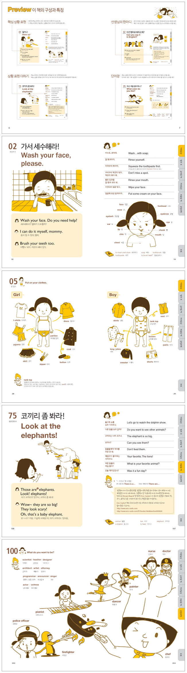 ¾ÆÄ§ºÎÅÍ Àú³á±îÁö ¾ÆÀÌ¿Í ÇÔ²² Áö³»´Â <¾ÆÄ§ÀÏ»ó>, <¹æ°ú ÈÄ>, <°øºÎÇÒ ¶§>, <Àú³áÀÏ»ó>, <¿ÜÃâÇÒ ¶§>, <°¨Á¤ Ç¥Çö> µî 100°¡ÁöÀÇ »óȲº°·Î °¡Àå Ȱ¿ëµµ ³ôÀº ¿µ¾î¹®ÀåÀ» ÀÏ·¯½ºÆ®·¹À̼ǰú ÇÔ²² ¼ö·ÏÇß´Ù. ¶ÇÇÑ Àå¼Òº°·Î ÆîÃÄ »ç¿ëÇÏ´Â Æ÷½ºÅÍ(ÇÑ µÎ ´Ü¾î·Î ¸»Çϱâ)¿Í ³×ÀÌÆ¼ºê ½ºÇÇÄ¿(ÀúÀÚ)°¡ Á÷Á¢ ³ìÀ½ÇÑ ½ºÇÇÅ· Æ®·¹ÀÌ´× MP3 CD°¡ ºÎ·ÏÀ¸·Î ´ã°Ü ÀÖ´Ù. ÇöÁ÷ ³×ÀÌÆ¼ºê ±³¼ö´ÔÀÇ °¨¼ö·Î ¾ÆÀ̵鿡°Ô Á¤È®ÇÑ ¿µ¾î´ëÈ Ç¥Çö¿¡ ¸ñ¸»¶ó ÀÖ´Â ÀþÀº ¾ö¸¶µé¿¡°Ô ¸íÄèÇÑ ´äº¯À» ÁÙ ½Ç¿ëÀûÀÎ ¿µ¾îÃ¥ÀÌ´Ù. |