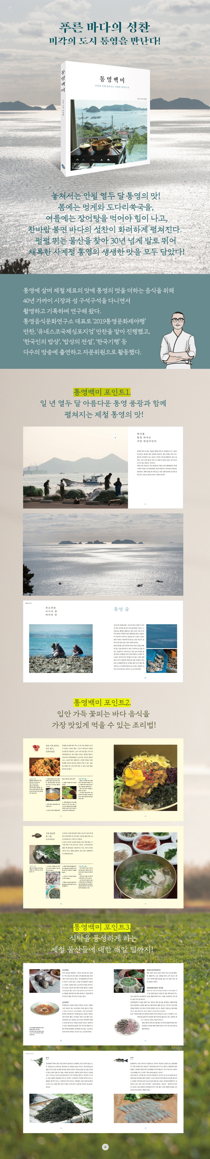 ÀÌ Ã¥Àº ¿µÎ ´Þ °èÀýÀÇ º¯È¿¡ ¹ß¸ÂÃç ¸Ô°í, ÀÏÇÏ°í »ì¾Æ°¡´Â Å뿵 »ç¶÷µéÀÇ »î°ú ¿ª»ç ±×¸®°í ±×µéÀÇ ½ÄŹÀ» dz¼ºÇÏ°Ô Ã¤¿ö ¿Â ¹Ù´Ù¿Í ¶¥ÀÇ Á¦Ã¶ Àç·áµé, µü ±× °èÀý¿¡ ¾Ë¸ÂÀº ½ÄÀç·á¸¦ °¡Àå ¸ÀÀÖ°Ô ¸ÔÀ» ¼ö ÀÖ´Â Á¶¸®¹ý±îÁö »ý»ýÇÏ°Ô ´ã¾Ò´Ù. 1¿ùºÎÅÍ 12¿ù±îÁö ¸Å ¿ùÀ» ´ëÇ¥ÇÏ´Â ¹°»ê¿¡ ´ã±ä À̾߱â´Â ¿ì¸®°¡ Àß ¾È´Ù°í »ý°¢Çß´ø Àç·áµéÀ» ÇÑ ¹ø ´õ ±íÀÌ µé¿©´Ù º¸°Ô²û ÇÑ´Ù. ¶Ç ±× °èÀý, ¹Ù´Ù¿Í ¶¥¿¡¼ ¸¸³¯ ¼ö ÀÖ´Â ´Ù¾çÇÑ Á¦Ã¶ Àç·áµéÀ» ¼Ò°³Çϰí Å뿵¿¡¼´Â ¾î¶»°Ô ¸Ô´ÂÁö, µû¶ó ¸¸µé ¼ö ÀÖ´Â Á¶¸®¹ýÀ» »çÁø°ú ÇÔ²² ¼ö·ÏÇÏ¿© ¾îµð¼³ª Å뿵ÀÇ ¸ÀÀ» ¸¸³¯ ¼ö ÀÖ´Ù.