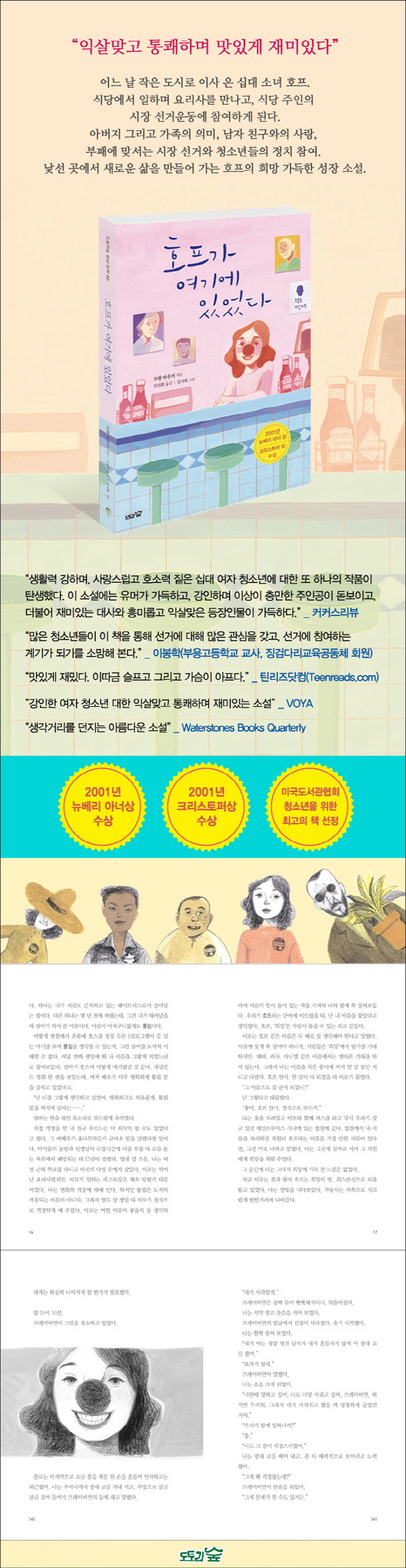 °¡Á·ÀÇ ÀǹÌ, »ç¶û, Á¤Ä¡¿¡ ´ëÇÑ ÁÖÁ¦¸¦ ´ã°í ÀÖ´Â ¡¶È£ÇÁ°¡ ¿©±â¿¡ ÀÖ¾ú´Ù¡·´Â ºü¸¥ È£Èí°ú À¯¸Ó¿Í ÀÍ»ì, Àι°µéÀÇ Æ¯Â¡°ú °í³ú¸¦ Àß µé¾î³½ û¼Ò³â ¼ºÀå ¼Ò¼³ÀÔ´Ï´Ù. ÀÛǰ¿¡¼ ÁÖ¿ä ¼ÒÀç·Î µîÀåÇÏ´Â Áï¼®¿ä¸®¸¸ÅÀ̳ª ¸ÀÀÖ°Ô Àç¹Ì°¡ ÀÖÀ¸¸ç, ¶§¶§·Î ¾Æ¸®°í ½½ÇÄÀ» ÇÔ²² ´À³¥ ¼ö Àִ û¼Ò³â°ú ¾î¸¥ µ¶ÀÚ ´©±¸³ª ¸¸Á·ÇÒ ¼ö ÀÖ´Â ¹®ÇÐ ÀÛǰÀÔ´Ï´Ù.