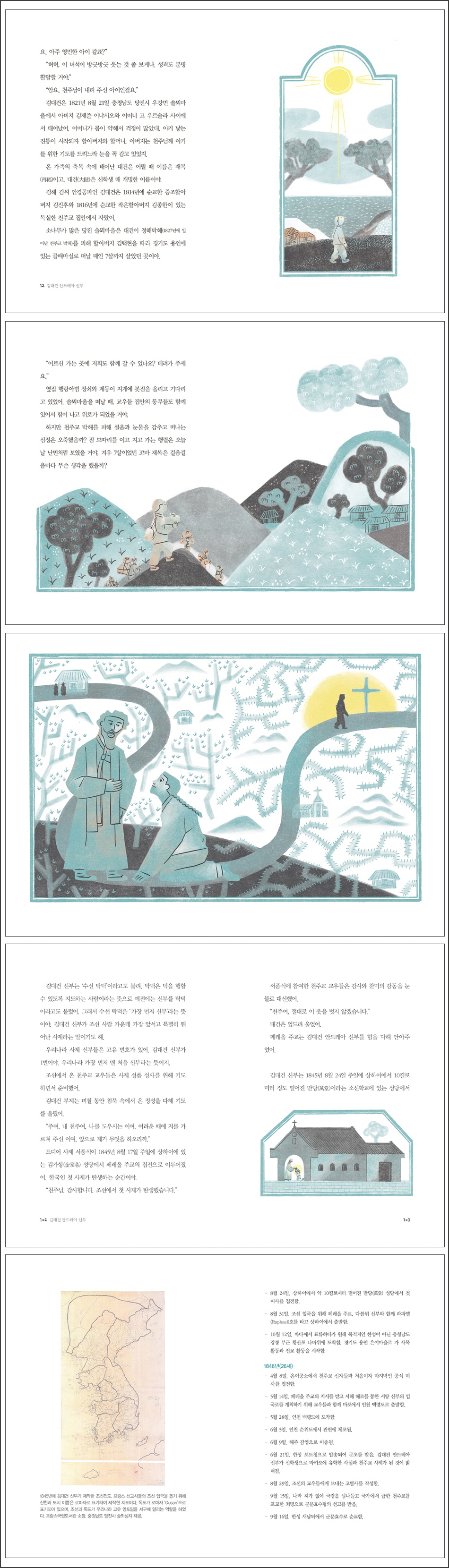 ¾Æ¹öÁö ±èÁ¦ÁØ À̳ĽÿÀ¿Í ¾î¸Ó´Ï °í ¿ì¸£¼ú¶ó »çÀÌ¿¡ ¼ ž¾î. ¾î¸Ó´Ï°¡ ¸öÀÌ ¾àÇØ¼ °ÆÁ¤ÀÌ ¸¹¾Ò´ë. ¾Æ±â ³º´Â ÁøÅëÀÌ ½ÃÀÛµÇÀÚ ÇҾƹöÁö¿Í ÇÒ¸Ó´Ï, ¾Æ¹öÁö´Â õÁÖ´Ô²² ¾Æ±â¸¦ À§ÇÑ ±âµµ¸¦ µå¸®´À¶ó ´«À» ²À °¨°í ÀÖ¾úÁö. ¿Â °¡Á·ÀÇ Ãູ ¼Ó¿¡ ÅÂ¾î³ ´ë°ÇÀº ¾î¸± ¶§ À̸§Àº À纹(î¢ÜØ)À̰í, ´ë°Ç(ÓÞËí)Àº ½ÅÇлý ¶§ °³¸íÇÑ À̸§À̾ß. ±èÇØ ±è¾¾ ¾È°æ°øÆÄÀÎ ±è´ë°ÇÀº 1814³â¿¡ ¼ø±³ÇÑ ÁõÁ¶ÇҾƹöÁö ±èÁøÈÄ¿Í 1816³â¿¡ ¼ø±³ÇÑ ÀÛÀºÇҾƹöÁö ±èÁ¾ÇÑÀÌ ÀÖ´Â µ¶½ÇÇÑ ÃµÁÖ±³ Áý¾È¿¡¼ ÀÚ¶ú¾î. -10~11ÂÊ ¸ð¹æ ½ÅºÎ´Â À纹À» º¸°í ³î¶ú¾î. Ä§ÂøÇϰí ÀÇÁ£ÇÑ µ¥´Ù ۵µ ÈÍÄ¥ÇÏ°í ¸ÚÁö°í, õÁÖ±³ ±³¸®µµ Àß ¾Ë°í ÀÖ¾î¼ ¸»À̾ß. À纹Àº ÀºÀ̰ø¼Ò ¸¶´ç¿¡ ¹«¸À» ²Ý¾ú¾î. ¸ð¹æ ½ÅºÎ°¡ ¹°¾ú¾î. ¡°Âü ¿µÆ¯ÇÑ ¾ÆÀ̷δÙ. ¼¼·Ê¸íÀº »ý°¢ÇÑ °ÍÀÌ ÀÖ´À³Ä?¡± ¡°¡®¾Èµå·¹¾Æ ¡¯ ¶õ ¼¼·Ê¸íÀ¸·Î »õ·Ó°Ô ž°í ½Í½À´Ï´Ù. µ¹¾Æ°¡½Å ÀÛÀºÇҾƹöÁö ¼¼·Ê¸íÀÌ ¾Èµå·¹¾Æ¼Ì½À´Ï´Ù.¡± ¸ð¹æ ½ÅºÎ´Â ³î¶ó¸ç, À¯Áø±æ ¿ª°üÀ» ÅëÇØ À纹¿¡°Ô ¹°¾ú¾î. ¡°È¤½Ã, »çÁ¦°¡ µÉ »ý°¢ÀÌ ÀÖ´À³Ä?¡± ¸ð¹æ ½ÅºÎÀÇ ¸»¿¡ À纹°ú ¾Æ¹öÁö´Â ±ô¦ ³î¶ó¼ ¼·Î ¸¶ÁÖ º¸¾Ò¾î. »çÁ¦°¡ µÇ·Á¸é ¿Ü±¹¿¡ ¿À·§µ¿¾È ³ª°¡ °øºÎµµ ÇØ¾ß Çϰí, ¶Ç ¸ñ¼ûÀ» ³»³õ¾Æ¾ß ÇÒÁöµµ ¸ð¸£´Â ¾öû³ ¶æÀÌ´Ï ¸»À̾ß. ¾Æ¹öÁö ±èÁ¦ÁØÀº ¾ÆµéÀÌ »çÁ¦°¡ µÇ´Â °ÍÀ» ´©±¸º¸´Ù ¹Ù¶úÁö¸¸, ¸ñ¼ûÀ» ¹ÙÄ¡´Â ¼ºÁ÷ÀÚÀÇ ±æÀ» ȯ¿µ¸¸ ÇÒ ¼ö´Â ¾ø¾ú¾î. -34ÂÊ ±è´ë°Ç ºÎÁ¦´Â ¸çÄ¥ µ¿¾È ħ¹¬ ¼Ó¿¡¼ ¿Â Á¤¼ºÀ» ´ÙÇØ ±âµµ¸¦ ¿Ã·È¾î. ¡°ÁÖ¿©, ³» õÁÖ¿©, ³ª¸¦ µµ¿ì½Ã´Â ÀÌ¿©, ¾î·Á¿î ¶§¿¡ Àú¸¦ °¡¸£ÃÄÁֽŠÀÌ¿©, ¾ÕÀ¸·Î Á¦°¡ ¹«¾ùÀ» ÇÏ¿À¸®±î.¡± µåµð¾î »çÁ¦ ¼Ç°½ÄÀÌ 1845³â 8¿ù 17ÀÏ ÁÖÀÏ¿¡ »óÇÏÀÌ¿¡ ÀÖ´Â ±è°¡Ç×(ÑÑÊ«ùõ) ¼º´ç¿¡¼ Æä·¹¿Ã ÁÖ±³ÀÇ ÁýÀüÀ¸·Î ÀÌ·ç¾îÁ³¾î. Çѱ¹ÀΠù »çÁ¦°¡ ź»ýÇÏ´Â ¼ø°£À̾ß. ¡°ÃµÁÖ´Ô, °¨»çÇÕ´Ï´Ù. Á¶¼±¿¡¼ ù »çÁ¦°¡ ź»ýÇß½À´Ï´Ù.¡± ¼Ç°½Ä¿¡ Âü¿©ÇÑ ÃµÁÖ±³ ±³¿ìµéÀº °¨»ç¿Í Âù¹ÌÀÇ °¨µ¿À» ´«¹°·Î ´ë½ÅÇß¾î. ¡°ÃµÁÖ¿©, ´Ù½Ã´Â ÀÌ ¿ÊÀ» ¹þÁö ¾Ê°Ú½À´Ï´Ù.¡± ´ë°ÇÀº ¾þµå·Á ¿ï¾ú¾î. Æä·¹¿Ã ÁÖ±³´Â ±è´ë°Ç ¾Èµå·¹¾Æ ½ÅºÎ¸¦ ²À ¾È¾ÆÁÖ¾ú¾î. ±è´ë°Ç ½ÅºÎ´Â 1845³â 8¿ù 24ÀÏ ÁÖÀÏ¿¡ »óÇÏÀÌ¿¡¼ 10ų·Î¹ÌÅÍ Á¤µµ ¶³¾îÁø ¸¸´ç(Ø¿ÓÑ)À̶ó´Â ¼Ò½ÅÇб³¿¡ ÀÖ´Â ¼º´ç¿¡¼ »çÁ¦·Î¼ ù ¹Ì»ç¸¦ ºÀÇåÇß¾î. ´Ùºí·ò ½ÅºÎÀÇ º¸Á·Π¼¾çÀÎ ½ÅºÎ ³× »ç¶÷, Áß±¹ÀÎ ½ÅºÎ ÇÑ »ç¶÷, Á¶¼±¿¡¼ ¸ñ¼±¿¡ ž½ÂÇÑ ±³¿ìµé°ú ¸¸´ç ¼º´ç ½ÅÀÚµéÀÌ ÇÔ²² ¾î¿ï¸° ÀÛÀº ¹Ì»ç¿´¾î. ¿ì¸®³ª¶ó »çÁ¦°¡ ¿Ã¸° ¶æ±íÀº ¹Ì»ç¿´¾î. ¹Ì»ç¸¦ µå¸®´Â µ¿¾È ¸ðµÎ °¨°ÝÀÇ ´«¹°À» Èê·È¾î. - 104~106ÂÊ ÃâÆÇ»ç ¼Æò2021³â À¯³×½ºÄÚ ¼¼°è ±â³ä Àι° ±è´ë°Ç ¾Èµå·¹¾Æ ½ÅºÎ