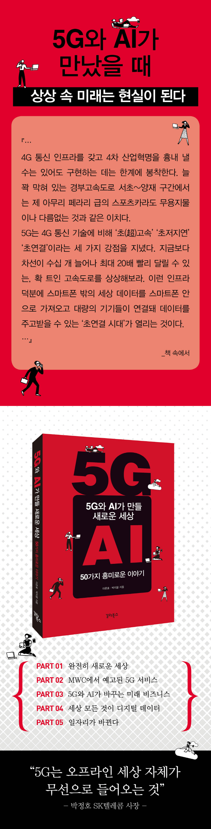 Ã¥¼Ò°³5G ½Ã´ë°¡ º»°Ý »ó¿ëÈµÇ¸é¼ ¿ì¸®ÀÇ ÀÏ»óÀº ¹°·Ð Àϰú ºñÁî´Ï½º µî »çȸ Àü¹Ý¿¡ Å« º¯È¸¦ °Þ°í ÀÖ´Ù. ƯÈ÷ ±âÁ¸ À̵¿Åë½Å ȯ°æÀÇ ÇѰ踦 ¶Ù¾î³Ñ´Â 5G ±â¼úÀº ±×µ¿¾È »ó»ó¸¸ ÇØ¿Ô´ø ¹Ì·¡ÀÇ ÀÏ»óÀ» Çö½Ç·Î ±¸ÇöÇϰí ÀÖ´Ù. ÀÌ Ã¥Àº ÃÖ±Ù »çȸ Àü¹Ý¿¡ ÷´Ü ȵΰ¡ µÇ°í ÀÖ´Â ¡®5G¡¯°¡ ¹«¾ùÀ̰í, ½ÇÁ¦ »ýȰÀ» ¾î¶»°Ô º¯È½Ã۰í ÀÖ´ÂÁö¸¦ ¾Ë±â ½±°Ô ¼³¸íÇϰí ÀÖ´Ù. ƯÈ÷ 5G°¡ AI¿¡ Á¢¸ñµÅ ±¸Çö ½Ãų ±â¼úÀû ½Ã³ÊÁö¿¡ ´ëÇØ¼µµ Èï¹Ì·Ó°Ô ºÐ¼®Çß´Ù.
