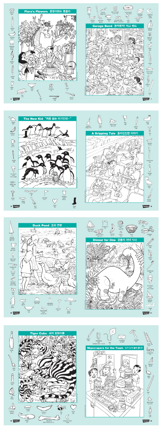 Àü ¼¼°è 1,000¸¸ ºÎ¸ðµéÀÌ ¼±ÅÃÇϰí, ¾ÆÀ̵éÀÌ Áñ°Å¿öÇÏ´Â Èï¹ÌÁøÁøÇÑ ¡¶ÁýÁß·Â ¾¦¾¦ ¼ûÀº±×¸²Ã£±â¡·´Â ÇÏÀ̶óÀÌÃ÷°¡ ¡¶ÇÏÀ̶óÀÌÃ÷ Highlights¡·Áö¿¡ ¿¬ÀçÇØ¿Â °Íµé Áß Çٽɸ¸À» ¼±º°ÇÏ¿© ¡®Áñ°Ì°Ô Àç´É °è¹ßÇϱ⡯¿ëÀ¸·Î Ãâ°£ÇÑ ¾Æµ¿¼ÀÌ´Ù. ±â¹ßÇÑ µ¿¹° ij¸¯Å͵éÀÌ µîÀåÇϰí ÀڽŰú º°¹Ý ´Ù¸£Áö ¾ÊÀº Ä£±¸µéÀÇ ´Ùä·Î¿î ¸ð½ÀÀÌ ´ã±ä Àå¸é ¼ÓÀ» Ž»öÇÏ¸ç ¼ûÀº ±×¸²À» ã´Â µ¿¾È ¾ÆÀ̵éÀÇ ½Ã°¢ÀûÀÎ ÀÎÁö´É·Â°ú âÀÇÀûÀÎ »ç°í´É·ÂÀÌ Çâ»óµÉ »Ó¸¸ ¾Æ´Ï¶ó ÀÚ±â ÁÖµµÀû ÇнÀ¹ýÀÇ Áß¿ä ¿ä¼ÒÀÎ ÁýÁ߷°ú °üÂû·ÂÀ» Ű¿ì°Ô µÈ´Ù. ¶ÇÇÑ ¹°°Ç¸¶´Ù ÇѱÛÀ̸§°ú ¿µ¹®À̸§À» °°ÀÌ Ç¥±âÇÏ¿© Ã¥À» Àб⠽ÃÀÛÇÑ ¾ÆÀ̵é°ú ¿µ¾î¸¦ ¹è¿ì±â ½ÃÀÛÇÑ ¾ÆÀ̵éÀÇ ¾îÈַ°ú ¾ð¾î ÀÎÁö´É·ÂÀ» ²ø¾î¿Ã·Á ÁÙ °ÍÀÌ´Ù. °°Àº »ç¹°ÀÌ Àå¸é¸¶´Ù º¯ÈµÈ ´Ù¾çÇÑ ¸ð½ÀÀ¸·Î µîÀåÇÏ¿© 450°³ÀÇ Çѱ۳¹¸»°ú ¿µ¾î´Ü¾îÀÇ ¹Ýº¹ÇнÀÀ» °¡´ÉÇÏ°Ô ÇÑ´Ù.