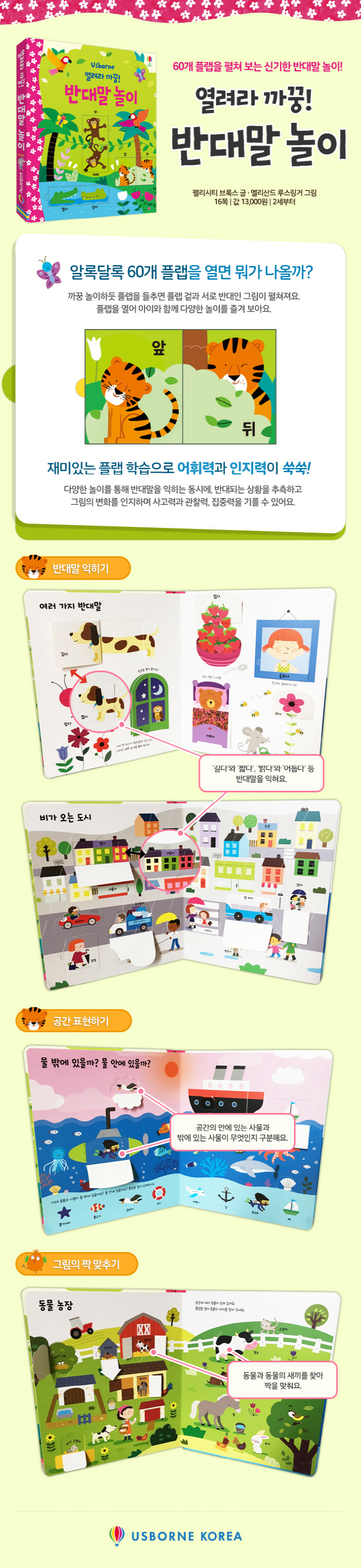 Ã¥ ¼Ó¿¡ ¾Ë·Ï´Þ·Ï 60°³ Ç÷¦ÀÌ °¡µæÇØ¿ä. ¿·Á¶ó ±î²á! ¾ÆÀ̵éÀÌ ÁÁ¾ÆÇÏ´Â ±î²á ³îÀ̸¦ Çϵí Ç÷¦À» ¿¾î ¡®¸¹´Ù¡¯¿Í ¡®Àû´Ù¡¯, ¡®¾É´Ù¡¯¿Í ¡®¼´Ù¡¯, ¡®³·¡¯°ú ¡®¹ã¡¯ µî Ç÷¦ ¾È°ú ¹ÛÀÌ ¹Ý´ëÀÎ ³¹¸»µéÀ» ¹è¿ì°í, ¼·Î ¹Ý´ëµÇ´Â ³¹¸»ÀÌ °¢°¢ ¾î¶² »óȲÀ» ÀǹÌÇÏ´ÂÁö ³¹¸»ÀÇ °³³äÀ» ÀÍÇô º¸¾Æ¿ä. ÇÏ´ÜÀÇ ±×¸²°ú ³¹¸»À» º¸°í Ç÷¦À» ¿¾î °°Àº ±×¸²À» ã°í, ±×¸² ¼Ó¿¡¼ ƯÁ¤ °ø°£ÀÇ ¾È°ú ¹Û¿¡ ÀÖ´Â »ç¹°ÀÌ °¢°¢ ¹«¾ùÀÎÁö ±¸ºÐÇϱ⵵ ÇØ¿ä. Ç÷¦À» ¿¸é ±Ý¼¼ ¹Ý´ë·Î ¹Ù²î´Â ½Å±âÇÑ ±×¸²°ú ³¹¸»À» º¸¸é¼ Àç¹ÌÀÖ°Ô ³¹¸» ÀÍÈ÷±â ¿¬½ÀÀ» ÇÒ ¼ö ÀÖ´ä´Ï´Ù.