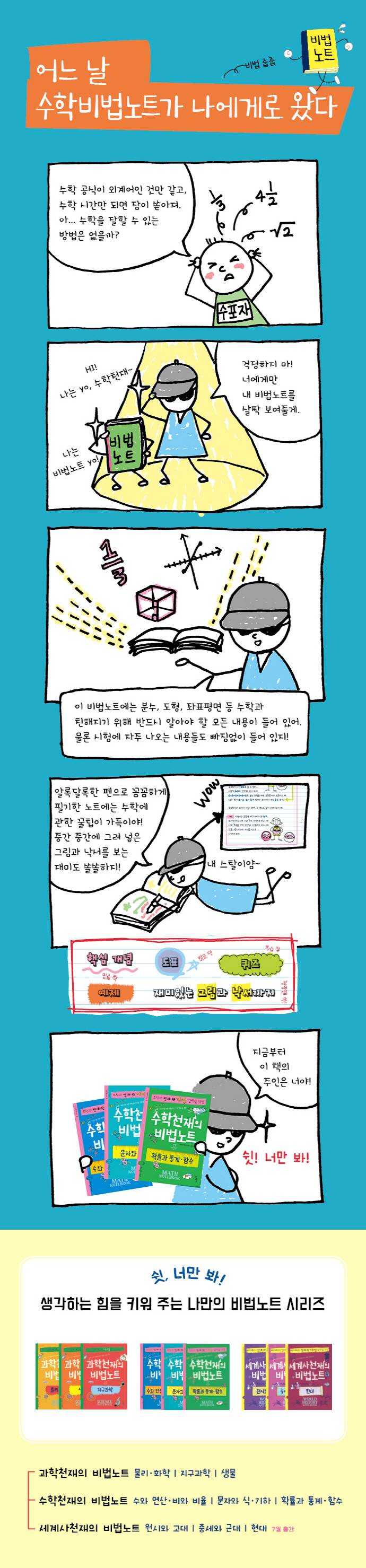 ¡º¼öÇÐõÀçÀÇ ºñ¹ý³ëÆ®¡»´Â ¼öÇÐÀ» ¾ÆÁÖ ÀßÇØ¼ ¼öÇРõÀç¶ó°í ºÒ¸®´Â ³»°¡ ²Ä²ÄÇÏ°Ô ÇʱâÇÑ ³ëÆ®¾ß. ¼öÇÐÀ» ÀßÇÒ ¼ö ÀÖ´Â ºñ¹ýÀÌ °¡µæ ´ã°Ü ÀÖ´Â ³ëÆ®¸¦ ³Ê¿¡°Ô¸¸ »ì¦ º¸¿© ÁÖ´Â °Å¾ß. ¿ì¸®´Â ¸»ÀÌ ÅëÇϴ ģ±¸ÀݾÆ? ±×·¯´Ï ³» ³ëÆ®¿¡ ¾²¿© ÀÖ´Â ¼öÇÐÀÇ ¿ø¸®¿Í °³³ä, ²ÜÆÁ, ºñ¹ýÀ» ÀÌÇØÇÏ´Â °Ô ÀüÇô ¾î·ÆÁö ¾ÊÀ» °Å¾ß. Áß¿äÇÑ ¼öÇÐ ¿ë¾î´Â Çü±¤ÆæÀ¸·Î µ¡Ä¥ÇØ ³õ¾Ò°í, ¾Ë·Ï´Þ·ÏÇÑ È»ìÇ¥ »óÀÚ ¼Ó¿¡ ´Ù¾çÇÑ ¿¹Á¦ Ç®À̸¦ ´ã¾Æ ³õ¾Ò¾î. ³»°¡ Áß°£ Áß°£¿¡ ±×·Á ³ÖÀº Àç¹ÌÀÖ´Â ±×¸²À̳ª ³«¼°¡ °³³ä ÀÌÇØ¸¦ µµ¿ÍÁÙ °Å¾ß. ÀÌ ³ëÆ®´Â ³×°¡ ¼öÇаú Ä£ÇØÁú ¼ö ÀÖ´Â °¡Àå ¿Ïº®ÇÑ ¹æ¹ýÀ» ¾Ë·Á ÁÙ °Å¾ß!