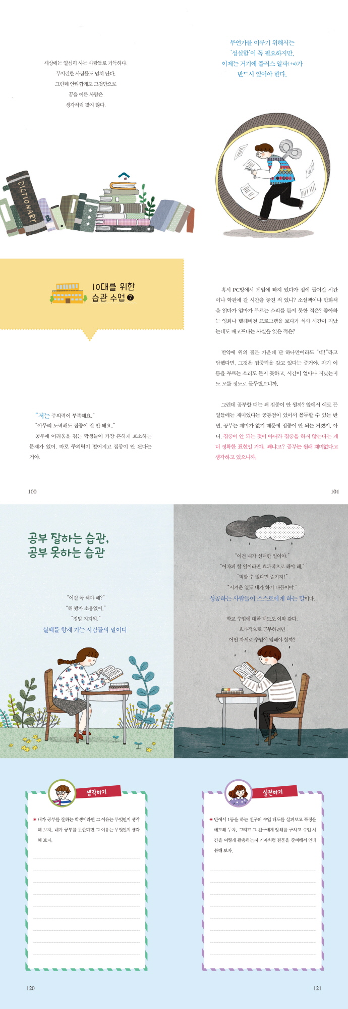 ´©±¸³ª ¸ÅÀÏ ¶È°°ÀÌ ½Ã°£À» ¿Ïº®ÇÏ°Ô È°¿ëÇÏ¸é¼ »ì ¼ö´Â ¾ø¾î. »ç¶÷¸¶´Ù »ç´Â ¹æ½ÄÀÌ ´Ù¸£°í, ¿ì¸®¿¡°Õ ¿¹»óÇÏÁö ¸øÇÑ ÀÏÀÌ ´Ã »ý±â´Ï±î. ÇÏÁö¸¸ ¾µµ¥¾ø´Â ÀÏ·Î ÇãÅõ·ç º¸³»´Â ½Ã°£À» ÁÙÀ̸é ÀλýÀÌ ´õ dz¿ä·Î¿öÁöÁö ¾ÊÀ»±î? ÀλýÀ» µÎ ¹è·Î »ì°í ½Í´Ù¸é ½Ã°£ °ü¸®°¡ ÇÊ¿äÇØ. ½Ã°£ °ü¸®´Â ³¶ºñÇÏ´Â ½Ã°£À» ÁÙÀ̰í ÀûÀº ½Ã°£µµ È¿À²ÀûÀ¸·Î ¾²´Â °ÍÀ̶ó°í ÇÒ ¼ö ÀÖ¾î. _33p ÈÞ´ëÀüȳª ÀÎÅͳÝ, ±×¸®°í TV ½Ãû¿¡ ³Ê¹« ¸¹Àº ½Ã°£À» ³¶ºñÇϰí ÀÖ´Ù¸é ±×°ÍÀº Àڱ⠸ñÀû¼ºÀÌ ºÎÁ·Çϱ⠶§¹®À̾ß. ¸¸¾à ¿©·¯ °¡Áö À¯È¤À» »Ñ¸®Ä¡Áö ¸øÇÏ°í ½Ã°£À» ÇãºñÇÏ¸ç »ì°í ÀÖ´Ù¸é ±×°Ç ¾ÆÁ÷ °£ÀýÈ÷ ¿øÇÏ´Â ¸ñÇ¥¸¦ ã¾Æ³»Áö ¸øÇ߱⠶§¹®À̰í._65p Áö±ÝºÎÅÍ Ã¥»óÀ» Á¦´ë·Î ÀÌ¿ëÇÏ´Â ¹æ¹ýÀ» ¾Ë·Á ÁÙ°Ô. ´çÀå ÇØ¾ß ÇÒ °øºÎ¿Í °ü·ÃµÈ Ã¥, ³ëÆ®, Çʱ⵵±¸¸¸ ³²±â°í Ã¥»ó À§¸¦ ¸ðµÎ Ä¡¿ì´Â °Å¾ß. ±×¸®°í °øºÎÇÒ ¶§¸¸ Ã¥»ó ¾Õ¿¡ ¾É´Â °ÅÁö. ±×·±µ¥ °øºÎÇÑ´Ù°í Ã¥»ó ¾Õ¿¡ ¾É¾Æ¼ ÇÑ ½Ã°£ µ¿¾È Ã¥»ó¸¸ Ä¡¿ì´Ù°¡ ÀϾ´Â Çлýµµ Âü ¸¹¾Æ. Áß¿äÇÑ °ÍÀº Æò¼Ò¿¡ Á¤¸®Çϰí Á¤µ·ÇÏ´Â ½À°üÀ» °®´Â °Å¾ß. ±×¸®°í Ã¥»ó¿¡¼´Â °øºÎ¸¸ ÇÏ´Â ½À°üÀ» ¸¸µå´Â °ÅÁö._91p ±×·±µ¥ °øºÎÇÒ ¶§´Â ¿Ö ÁýÁßÀÌ ¾È µÉ±î? ¾Õ¿¡¼ ¿¹·Î µç Àϵ鿡´Â Àç¹ÌÀÖ´Ù´Â °øÅëÁ¡ÀÌ ÀÖ¾î¼ ¸ôµÎÇÒ ¼ö ÀÖ´Â ¹Ý¸é, °øºÎ´Â Àç¹Ì°¡ ¾ø±â ¶§¹®¿¡ ÁýÁßÀÌ ¾È µÇ´Â °Å°ÚÁö. ¾Æ´Ï, ÁýÁßÀÌ ¾È µÇ´Â °ÍÀÌ ¾Æ´Ï¶ó ÁýÁßÀ» ÇÏÁö ¾Ê´Â´Ù´Â °Ô ´õ Á¤È®ÇÑ Ç¥ÇöÀÏ °Å¾ß. ¿Ö³Ä°í? °øºÎ´Â ¿ø·¡ Àç¹Ì¾ø´Ù°í »ý°¢Çϰí ÀÖÀ¸´Ï±î._101p Çʱâ´Â °øºÎÇÑ ³»¿ëÀ» ±×´ë·Î º¹»çÇÏ´Â °ÍÀÌ ¾Æ´Ï¶ó ÀÚ½ÅÀÇ ¾ð¾î·Î ¹Ù²ã ¾²´Â ÀÛ¾÷À̾ß. ÀÚ½ÅÀÇ ¾ð¾î·Î ¹Ù²ã ¾²·Á¸é °øºÎÇÑ ³»¿ëÀ» Á¦´ë·Î ÀÌÇØÇØ¾ß °¡´ÉÇØ. ÇʱâÇÏ´Â °úÁ¤¿¡¼ ÀÚ½ÅÀÌ ¹«¾ùÀ» ¾Ë°í, ¹«¾ùÀ» ¸ð¸£´ÂÁö ã¾Æ³¾ ¼ö ÀÖ¾î._174p ½Èµç ÁÁµç ½ÃÇèÀ̶õ ÀÚ½ÅÀÇ ³ë·Â¿¡ ´ëÇÑ °á°ú¸¦ È®ÀÎÇÏ´Â °¡Àå Áß¿äÇÑ ¼ö´ÜÀ̾ß. ½ÃÇèÀº ±× °á°ú¸¦ ÅëÇØ ¿ì¸®¿¡°Ô ¹«¾ùÀÌ ºÎÁ·ÇÑÁö, ¾î¶² ³ë·ÂÀ» ÇØ¾ß ÇÏ´ÂÁö ±ú´Ý°Ô ÇØ ÁÖÁö. È£±â½É°ú ÇÔ²² µµÀü ¿å±¸¸¦ Ű¿ö Áֱ⵵ Çϰí. ¾îÂ÷ÇÇ Ä¡¸¦ ½ÃÇèÀ̶ó¸é ±àÁ¤ÀûÀ¸·Î »ý°¢ÇÏ´Â °ÍÀÌ ÁÁ°ÚÁö? ½ÃÇè¿¡ È¿°úÀûÀ¸·Î ´ëóÇÒ ¼ö ÀÖ´Â ¹æ¹ýÀ» ã¾Æº¸°í ¸»À̾ß._189~190p ÃâÆÇ»ç ¼Æò10´ë¸¦ À§ÇÑ ½É¸®ÇÐÀÚÀÇ ¡®½À°ü¡¯ ¼ö¾÷