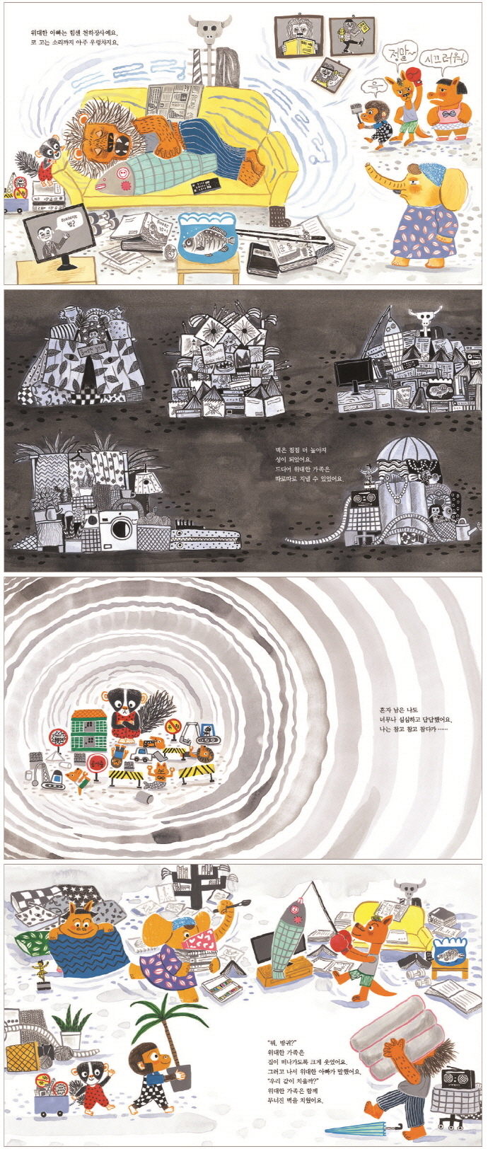 Ã¥¼Ò°³µ¿¹°ÀÇ ¿Õ »çÀÚ, ÄÚ³¢¸® ¾ö¸¶, ±ÇÅõ¼±¼ö Å«Çü Ä»°Å·ç, ÃãÃß´Â Çϸ¶ ´©³ª, ÀçÁÖ²Û ¿ø¼þÀÌ ÀÛÀºÇü, ±×¸®°í ¹æ±ÍÀïÀÌ ½ºÄÈÅ©ÀÎ ³ª·Î ÀÌ·ç¾îÁø °¡Á·À̾߱⠡ºÀ§´ëÇÑ °¡Á·¡». ÀÌ ±×¸²Ã¥Àº °¢ÀÚ Àι°ÀÇ °³¼º°ú µ¿¹° Ư¼ºÀ» ¿¬°á½ÃÄÑ Ä³¸¯ÅͷΠǥÇöÇÔÀ¸·Î½á ¼·ÎÀÇ ´Ù¸§À» ÀÎÁ¤ÇÏ°í ¹è·ÁÇÒ ¶§ ÁøÁ¤À¸·Î ÀÚ½ÅÀÇ À§´ëÇÔÀÌ µå·¯³´Ù´Â °ÍÀ» ±ú´Ý°Ô ÇØÁÝ´Ï´Ù. Áï, °¢ÀÚÀÇ °³¼ºÀ» ÀÎÁ¤Çϰí Á¸ÁßÇØ ÁÖ¸é¼ ÇÔ²² »ì¾Æ°¡´Â °¡Á·¿¡ ´ëÇÑ À̾߱⸦ ´ã°í ÀÖ½À´Ï´Ù.