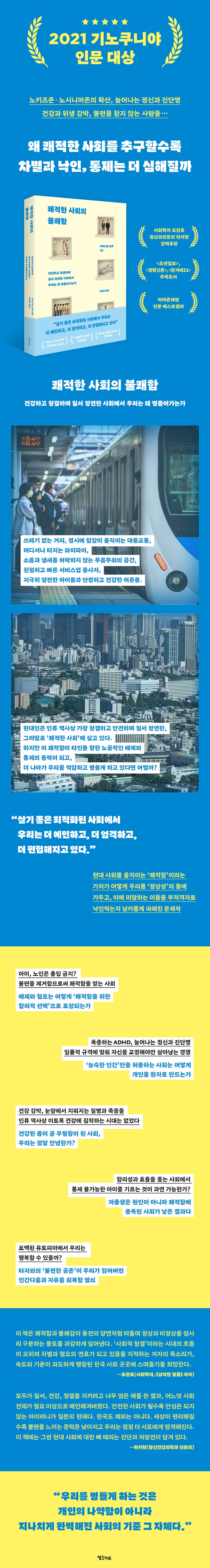 Á¤½Å°Ç°ÀÇÇаú Àü¹®ÀÇ ±¸¸¶½Ã·Î µµ·ç´Â ½Å°£ ¡¶ÄèÀûÇÑ »çȸÀÇ ºÒÄèÇÔ¡·¿¡¼ ¿ì¸®°¡ ÀÌ·èÇÑ Áú¼¿Í û°á, È¿À²°ú ±ÕÁúȰ¡ ¿ì¸®¿¡°Ô¼ ¹«¾ùÀ» ¾Ñ¾Æ°¬´ÂÁö, ±×¸®°í ¿Ö ÀÌ ÃÖÀûÈµÈ »çȸ¿¡¼ °³ÀÎÀº ´õ ºÒÇàÇØÁö°í ÀÖ´ÂÁö¸¦ ÆÄÇìÄ£´Ù. ÀÌ Ã¥Àº Áú¼¿Í û°áÀ» ¼þ»óÇÏ´Â ÀϺ»¿¡¼ Ãâ°£ Áï½Ã Å« ¹ÝÇâÀ» ÀÏÀ¸Ä×À¸¸ç, ¼Á¡Àΰú µ¶ÀÚµéÀÌ ±×ÇØ ÃÖ°íÀÇ Àι®¼¿¡ ¼ö¿©ÇÏ´Â ¡®±â³ëÄí´Ï¾ß Àι®´ë»ó¡¯(2021)À» ¹ÞÀ¸¸ç ÈÁ¦¸¦ ¸ð¾Ò´Ù.