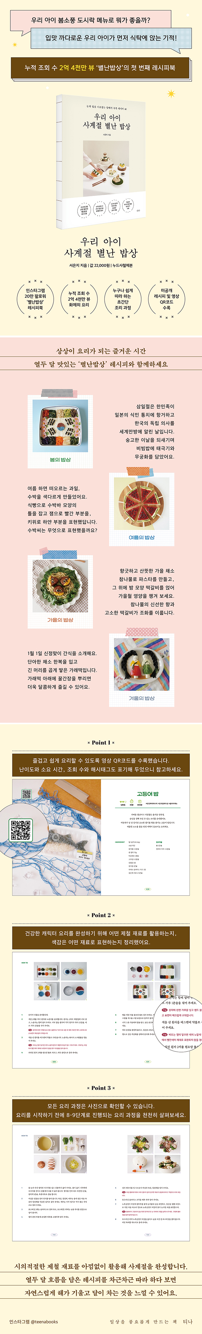 3¿ù 1ÀÏ, »ïÀÏÀýÀº ÇѹÎÁ·ÀÌ ÀϺ»ÀÇ ½Ä¹Î ÅëÄ¡¿¡ Ç×°ÅÇϰí Çѱ¹ÀÇ µ¶¸³ Àǻ縦 ¼¼°è ¸¸¹æ¿¡ ¾Ë¸° ³¯ÀÔ´Ï´Ù. ¼þ°íÇÑ À̳¯À» µÇ»õ±â¸ç ºñºö¹ä¿¡ űرâ¿Í ¹«±Ãȸ¦ ´ã¾Ò¾î¿ä. --- p.18 ¹«´õ¿î ¿©¸§¿¡ °¡Àå ¸ÕÀú ¶°¿À¸£´Â °£½ÄÀº ¾ÆÀ̽ºÅ©¸²ÀÌÁÒ. ¾ÆÀ̽ºÅ©¸²ÀΠôÇÏ´Â ¹äµµ±×¸¦ ¼Ò°³ÇÕ´Ï´Ù. ³ì¾Æ¼ Èê·¯³»¸®´Â ¾ÆÀ̽ºÅ©¸²À» Ä¡Áî·Î Ç¥ÇöÇß¾î¿ä. ¸ð¾ç ¶§¹®Àϱî¿ä? ¸Ô´Ù º¸¸é ´õÀ§°¡ ½Ï °¡½Å´ä´Ï´Ù. --- p.56 ¿µ¾ç¼Ò°¡ dzºÎÇÑ ¸êÄ¡¿Í °í¼ÒÇÑ ¶¥ÄáÀ¸·Î ¸¸µç ÁÖ¸Ô¹äÀ» ü´Ù Ä¡Áî·Î ÄÚÆÃÇØ¿ä. °¡À»À» ´ëÇ¥ÇÏ´Â °úÀÏ ´Ü°¨ÀÌ ¿Ï¼ºµË´Ï´Ù. ÁÖ¸Ô¹ä 6°³¸¦ ¸¸µé¾î Ãß¼® ¼±¹° ¼¼Æ®Ã³·³ Ç¥ÇöÇß¾î¿ä. À̹ø Ãß¼®¿¡´Â ´Ü°¨ ÁÖ¸Ô¹äÀ¸·Î ¸¶À½À» Ç¥ÇöÇØ º¸¸é ¾î¶³±î¿ä? --- p.106 ´« ³»¸®´Â °Ü¿ï³¯¿¡´Â ¶ß²öÇÑ Àü°ñÀÌ Á¦°ÝÀÌÁÒ. °®Àº ¹ö¼¸À» µë»Ò ³Ö°í º¸±Ûº¸±Û ²úÀÌ¸ç ¸Ô´Ù º¸¸é ¸öµµ ¸¶À½µµ µû¶æÇØÁý´Ï´Ù. µçµçÇÑ ÇÑ ³¢ ½Ä»ç·Î ¼Õ»ö¾ø´Â ´«»ç¶÷ ¹ö¼¸ Àü°ñÀÌ¿¡¿ä. --- p.156 ÃâÆÇ»ç ¼ÆòÄ«Çǹٶó ½Ã±ÝÄ¡ Ä«·¹, ¼ö¹Ú¹Ù Å佺Ʈ, ´«»ç¶÷ ¹ö¼¸ Àü°ñ