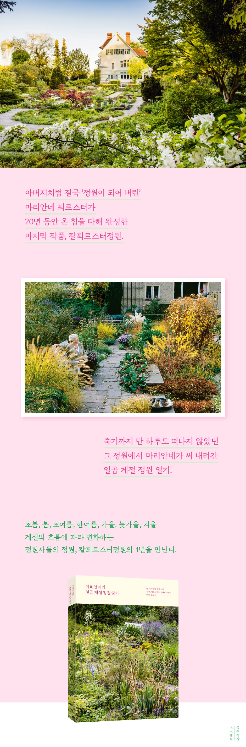 ¸¶¸®¾È³×´Â Á¤¿øÀ» ãÀº ¹æ¹®°´µé¿¡°Ô ¡°´ç½ÅÀÌ Ä® Ç£¸£½ºÅÍÀÇ µþÀΰ¡¿ä¡±¶ó´Â Áú¹®À» ÀÚÁÖ ¹Þ¾Ò´Ù. ¸¶¸®¾È³×´Â ±×µé¿¡°Ô ÀÌ·¸°Ô ¡®»À Àִ¡¯ ´ë´äÀ» Çß´Ù. ¡°³» Á÷¾÷Àº ¾Æ¹öÁöÀÇ µþÀÔ´Ï´Ù.¡± ¸¶¸®¾È³×´Â Ä® Ç£¸£½ºÅÍÀÇ µþÀ̱⵵ ÇßÁö¸¸ ¿Õ¼ºÇÏ°Ô È°µ¿Çϸç ÁÁÀº ÀÛǰÀ» ³²±ä Á¶°æ°¡ÀÌÀÚ Á¤¿øµðÀÚÀ̳ʿ´´Ù. Ä® Ç£¸£½ºÅͰ¡ ¸¸µé¾úÁö¸¸, ÀÌ Á¤¿øÀÇ ÃÖ±Ù ¸ð½ÀÀº µþ ¸¶¸®¾È³×°¡ »õ·Ó°Ô ä¿ì°í ´ÙµëÀº °ÍÀÌ´Ù. 20³â µ¿¾È ¿Â ÈûÀ» ´ÙÇØ ¿Ï¼ºÇÑ ¸¶¸®¾È³×ÀÇ ¸¶Áö¸· ÀÛǰÀÌ ¹Ù·Î ¡®Ä®Ç£¸£½ºÅÍÁ¤¿ø¡¯ÀÎ °ÍÀÌ´Ù. ¸¶¸®¾È³×´Â 1991³âºÎÅÍ 2010³â±îÁö ºÎ¸ð°¡ ¹°·Á ÁØ À¯»ê, º¸¸£´ÔÀÇ Áý, ±×¸®°í Á¤¿ø°ú ½Ä¹°À» ¸ðµÎ ÁöÄÑ ³Â´Ù. Ưº°È÷ ÀÌ Áõº¸ÆÇ¿¡´Â º§±â¿¡ÀÇ ÁÖÅÃÁ¤¿ø°ú Æ÷Ã÷´ãÀÇ ½¶·ÎÃ÷ °¡Á· Á¤¿ø µî Á¤¿øµðÀÚÀÌ³Ê ¸¶¸®¾È³×ÀÇ ÀÛǰÀ» º¼ ¼ö ÀÖ´Â Áö¸éÀÌ Ãß°¡µÇ¾ú´Ù. È·ÁÇϸ鼵µ Á¶È·Ó°í ¸Å¿ì ¿ªµ¿ÀûÀÎ ¸¶¸®¾È³×ÀÇ Á¤¿ø ÀÛǰÀ» µû·Î º¼ ¼ö ÀÖ´Ù´Â °Íµµ ÀÌ Ã¥ÀÇ ¸Å·Â Áß Çϳª´Ù.