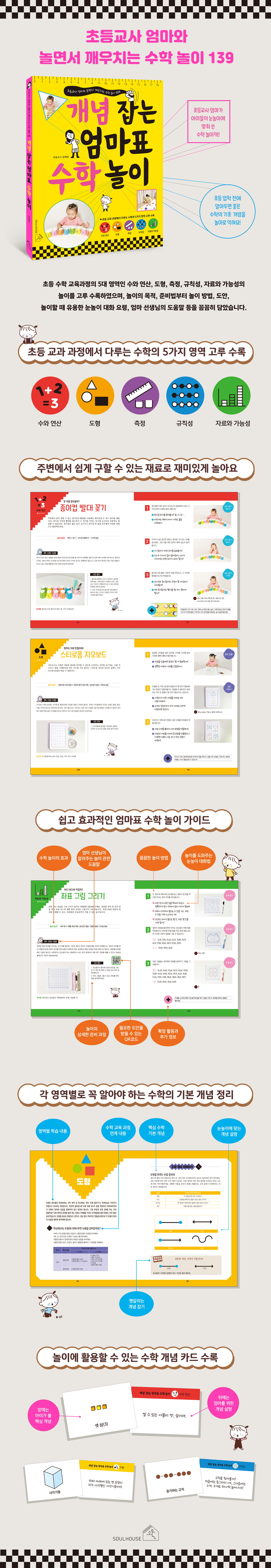 ³îÀÌ È°µ¿ ÇϳªÇϳª´Â ÇØ´ç ³îÀÌ¿¡¼ ´Ù·ç´Â ¼öÇÐ °³³äÀº ¹«¾ùÀÎÁö, Áغñ¹æ¹ýºÎÅÍ ÀÚ¼¼ÇÑ ³îÀÌ ¹æ¹ý, ¾ÆÀÌÀÇ ´«³ôÀÌ¿¡ ¸Â´Â ´ëÈÀÇ ¿ä·ÉÀ» ¾Ë·ÁÁÖ¸ç, ¾îµð¿¡ ÃÊÁ¡À» µÎ°í ³îÀÌÇÏ´Â °ÍÀÌ ÁÁÀºÁö ±³»ç ¾ö¸¶ÀÇ µµ¿ò¸» µîÀ» ²Ä²ÄÈ÷ ´ã¾Ò´Ù. ¶ÇÇÑ ÀÌ Ã¥ÀÇ È°µ¿¿¡ µµ¿òÀÌ µÇ´Â µµ¾ÈµéÀ» QRÄÚµå·Î ³Ö¾ú°í, °¢ ¿µ¿ªÀ» ¾Æ¿ì¸£´Â µµÀԺο¡´Â ¡®°³³ä ÀÌÇØÇϱ⡯¸¦ ¼ö·ÏÇÏ¿© ¼öÇÐÀÇ 5´ë ¿µ¿ªº°·Î ¾î¶² °ÍÀ» ¹è¿ì°í ÀÍÇô¾ß ÇÏ´ÂÁö ¾Ë·ÁÁÖ¸ç, ºÎ·ÏÀ¸·Î´Â ¾ÆÀÌ¿Í ÇÔ²² ³î¸é¼ ÀÍÈ÷´Â ¼öÇÐ °³³ä Ä«µå¸¦ ½Ç¾ú´Ù.