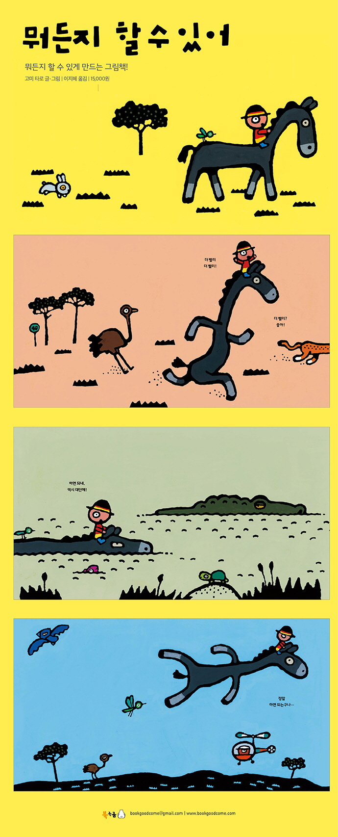 ¾î´À ³¯, ÇÑ ²¿¸¶°¡ ¸»¿¡°Ô ´Ù°¡¿É´Ï´Ù. ¡°¿À´ÃÀº ¸Ó¸® À§¿¡ Ÿ°í ½ÍÀºµ¥ ¾î¶§?¡±¶ó°í ¸»ÇÕ´Ï´Ù. ¸»Àº ´çȲÇÏÁö¸¸, ¼±¶æ ÇØ º¸ÀÚ°í ÇÏÁö¿ä. ²¿¸¶´Â ¸»ÀÇ ¸Ó¸® À§¿¡ Ÿ´Ï ±âºÐÀÌ Á¤¸» ÁÁ½À´Ï´Ù. À̹ø¿¡´Â ¿·¿¡ ÀÖ´ø ±â¸°À» º¸°í ¸»¿¡°Ô Á» ´õ ³ôÀÌ Å¿ö ´Þ¶ó°í ÇÕ´Ï´Ù. ²¿¸¶¿Í ¸»ÀÇ ÇൿÀ» º¸°í ÁÖº¯¿¡ ÀÖ´ø µ¿¹° Ä£±¸µéµµ ±ô¦ ³î¶ø´Ï´Ù. ²¿¸¶ÀÇ ¿ä±¸´Â ³¡³¯ ÁÙ ¸ð¸£°í, ¸»Àº Á¡Á¡ ÁöÃİ©´Ï´Ù. °ú¿¬ ²¿¸¶¿Í ¸»ÀÇ µµÀüÀº ¾î¶»°Ô ³¡³¯±î¿ä? ¹ßÄ¢ÇÑ ²¿¸¶¿Í ¼øÁøÇÑ ¸»ÀÇ À¯ÄèÇÑ µµÀü, °Å±â¿¡ ±â¸·Èù ¹ÝÀü±îÁö ´õÇØÁ® Å« Áñ°Å¿òÀ» ¼±»çÇÏ´Â ±×¸²Ã¥ ¡º¹¹µçÁö ÇÒ ¼ö À־ÀÔ´Ï´Ù.