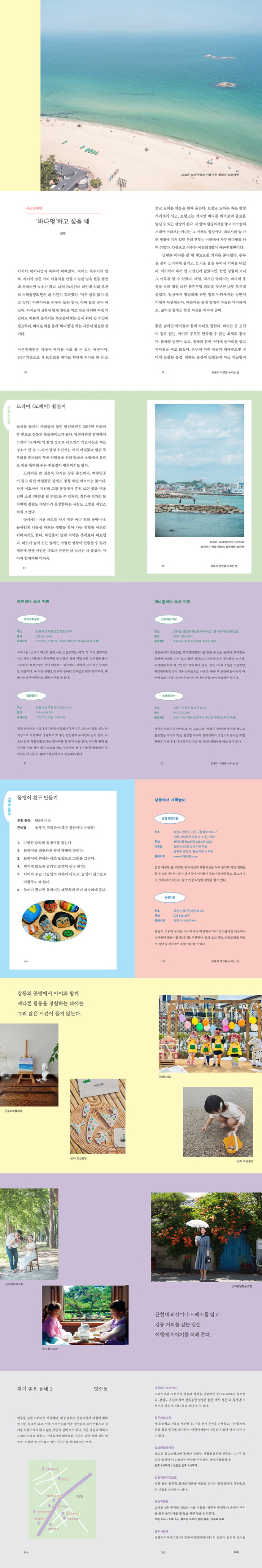 °¸ªÀÇ ¿µÁøÇغ¯, ±ÝÁøÇغ¯, ¾ç¾çÀÇ °¹¸¶À»Çغ¯ÀÌ ³»°¡ ¹ß°ßÇÑ, ¾ÆÀÌ¿Í ¹°³îÀÌÇϱâ ÁÁÀº ÇØº¯ÀÌ´Ù. ¹Ù´Ù ÃÊÀÔÀÌ ¹ÌÃëÇÐ ¾ÆÀÌÀÇ ¹«¸ Á¤µµ µÇ´Â ±íÀ̶ó ¸ð·¡»çÀå°ú ¹Ù´å¹°ÀÇ °æ°è¸¦ ¿À°¡¸ç ³ë´Â ¾ÆÀ̵鿡°Ô ¾È¼º¸ÂÃãÀÎ ÇØº¯ÀÌ´Ù. (24ÂÊ, ¾ÆÀÌ¿Í ¹°³îÀÌÇϱâ ÁÁÀº ¹Ù´Ù: ¿µÁøÇغ¯, °¹¸¶À»Çغ¯, ±ÝÁøÇغ¯) À̸§ÀÌ ³Î¸® ¾Ë·ÁÁø °Í°ú ´Þ¸® À߸ø ¾Ë·ÁÁø ºÎºÐµµ ÀÖ´Ù. °¸ªÀ» ã´Â ¸¹Àº À̵éÀÌ ¡®°æÆ÷´ë¡¯¸¦ °æÆ÷ÇØº¯À¸·Î ¾Ë°í ÀÖ´Â °Í. ³ªµµ ¸¶Âù°¡Áö¿´´Ù. ¡°¾Æ, °Å±â °æÆ÷´ë ¹Ù´Ù°¡ ¸»ÀÌÁÒ¡± Çϸç À̾߱⸦ ½ÃÀÛÇÏ´Â ¼ø°£, °¸ª Åä¹ÚÀÌ Çü´ÔÀÌ ¸»À» °íÃÄ ÁֽŴÙ. ¡°°æÆ÷´ë´Â Á¤ÀÚ°í, ¹Ù´Ù´Â °æÆ÷ÇØº¯À̰í.¡± ¸¹À̵é Çò°¥·Á ÇÑ´Ù. °æÆ÷´ë´Â °æÆ÷È£¼ö¸¦ ÇÑ´«¿¡ ¹Ù¶óº¼ ¼ö ÀÖ´Â Á¤ÀÚ¸¦ ÀǹÌÇϰí, °æÆ÷ÇØº¯Àº °æÆ÷È£¼ö¿Í ¸¶ÁÖÇϰí ÀÖ´Â ÇØº¯ÀÌ´Ù. °æÆ÷È£¼ö ÇѰ¡¿îµ¥ º¸ÀÌ´Â Á¤ÀÚ¸¦ °æÆ÷´ë·Î ¿ÀÀÎÇϱ⵵ Çϴµ¥, ±× Á¤ÀÚÀÇ À̸§Àº ¡®¿ùÆÄÁ¤¡¯ÀÌ´Ù. ±×·±µ¥ Æ÷ÅлçÀÌÆ®¿¡µµ ¡®°æÆ÷´ë¡¯¸¦ °Ë»öÇÏ¸é ¡®°æÆ÷ÇØº¯¡¯À¸·Î ¼Ò°³°¡ ³ª¿Â´Ù! (41ÂÊ, °¸ª ¹Ù´ÙÀÇ Èï¸Á¼º¼è: °æÆ÷ÇØº¯, ¾È¸ñÇØº¯, ÁÖ¹®ÁøÇغ¯) ±×·¸°Ô ¸¸³ °÷ÀÌ ¿¬°îÇØº¯ ¼ÖÇâ±âÄ·ÇÎÀåÀÌ´Ù. Âʺû ¹Ù´Ù¿Í ³Ê¸¥ ¸ð·¡»çÀåÀ» ¾Õ¸¶´çÀ¸·Î, ¿ïâÇÑ ¼Ò³ª¹« ½£À» ¾È¹æÀ¸·Î ´©¸± ¼ö ÀÖ´Â °÷. 2016³â¿¡ °³ÀåÇÑ ÈÄ ¾Æ¸§´Ù¿î ºä¿Í ³ÐÀº »çÀÌÆ®, ±ú²ýÇÑ ½Ã¼³·Î Àü±¹ÀÇ Ä·ÆÛµéÀÌ ¼Õ²Å´Â´Ù. ÀÌÁ¦ ¸· Ä·ÇÎÀ» ½ÃÀÛÇÏ´Â ÀÌ, ȤÀº Ä·ÇÎÀ» ´Þ°¡¿öÇÏÁö ¾Ê´Â ÀÏÇàÀÌ ÀÖ´Ù¸é ´õ ÃßõÇÏ´Â °÷ÀÌ´Ù. Ãʺ¸¿¡°Ô ³Ê¹« °í»ý¸¸ ÇÏ´Â Ä·ÇÎÀº ´ÙÀ½À» ±â¾àÇÏ±â ¾î·Æ°í, Ä·Çο¡ °üÇÑ ºÒÈ£´Â ¾îÁö°£ÇÑ ¸Å·ÂÀÌ ¾Æ´Ï¸é µÚÁý±â ¾î·Æ±â ¶§¹®ÀÌ´Ù. ¿©±â¶ó¸é ³Ê¹« ÈûµéÁö ¾Ê°Ô ¾î´À °èÀýÀ̵ç ÃÖ¼ÒÇÑÀÇ Àåºñ·Î Ä·ÇÎÀÇ ·Î¸ÁÀ» Á¦´ë·Î ÀÌ·ê ¼ö ÀÖ´Ù. (87ÂÊ, Àλý Ä·ÇÎÀå¿¡¼ ¿Ïº®ÇÑ ÇÏ·ç: ¿¬°îÇØº¯ ¼ÖÇâ±âÄ·ÇÎÀå) °¡¸¸È÷ ¹Ù¶óº¸´Â ¹Ù´Ùµµ ÈǸ¢ÇÏÁö¸¸, ²¿±êÇØÁø ¸¶À½À» ´Þ·¡±â¿£ ¸öÀ» ¿òÁ÷À̸ç ÀÚ¿¬À» Àû±ØÀûÀ¸·Î ÃëÇÏ´Â ÆíÀÌ ´õ È¿°úÀûÀ̾ú´Ù. ¼ö¿µÀ̳ª ´Þ¸®±â ¼öÁرîÁö °¥ °Íµµ ¾øÀÌ ±×³É ¹Ù´Ù °çÀ» °È±â¸¸ ÇØµµ µÈ´Ù. °¸ªÀº ÁÖ¹®Áø¿¡¼ºÎÅÍ µµÁ÷ÇØº¯±îÁö ¾à 77ų·Î¹ÌÅÍÀÇ ÇØ¾È¼±À» µû¶ó ½º¹« °³°¡ ³Ñ´Â ÇØº¯À» ǰ°í ÀÖ´Ù. ÀÌ Áß¿¡´Â ¸ð·¡»çÀåÀ» ¹«°Ì°Ô °ÈÁö ¾Ê°íµµ ¹Ù´Ù¸¦ ¸¸³£ÇÏ¸ç »êÃ¥ÇÒ ¼ö ÀÖ´Â °÷ÀÌ ÀÖ´Ù. (158ÂÊ, °È°í ¹Ù¶óº¸°í »ç¶ûÇ϶ó: ¼ÛÁ¤Çغ¯ ½£±æ, Á¤µ¿½É°î ¹Ù´ÙºÎ䱿) °³ÀÎÀûÀÎ ÃëÇâÀÌÁö¸¸, ÃÊ´çµÎºÎ¸¦ Áñ±â±â °¡Àå ÁÁÀº ½Ã°£Àº À̸¥ ¾ÆÄ§ÀÌ´Ù. µÎºÎ´Â ²Ï³ª ¼ÕÀÌ ¸¹ÀÌ °¡´Â À½½ÄÀε¥, ´ëºÎºÐÀÇ °úÁ¤ÀÌ »õº®¿¡ ÀÌ·ïÁø´Ù. ¹ã»õ ºÒ·Á ³õÀº ÄáÀ» °¥°í, ¼ö¾øÀÌ Àú¾î °¡¸ç Äá¹°À» ²úÀ̰í, À̸¦ °É·¯ °£¼ö¸¦ ³Ö°í ±»Çô ³½ µÚ¿¡¾ß ¿ì¸®°¡ ¾Æ´Â µÎºÎ°¡ µÈ´Ù. ÀÌ·± Á¤¼ºÀ» ´ã¾Æ À̸¥ ¾ÆÄ§, °« ¸¸µç µÎºÎ´Â ¹«Ã´À̳ª ºÎµå·´°í, °í¼ÒÇϰí, µû¶æÇÏ´Ù. (223ÂÊ, ÃÊ´çµÎºÎ¸¦ ¸Ô´Â ½Ã°£: ÃÊ´çµÎºÎ¸¶À») »ç¶÷µéÀº ¼ö¸¹Àº ÀÌÀ¯·Î ¿©ÇàÀ» °£´Ù. ÃàÁ¦°¡ ¿©ÇàÀÇ ´Ü ÇϳªÀÇ ¸ñÀûÀÌ µÇ·Á¸é °ú¿¬ ¹«¾ùÀÌ ´ã°Ü¾ß ÇÒ±î? ´©±º°¡ ÃàÁ¦¸¦ Áñ±â·¯ ¿©ÇàÀ» °£´Ù°í ¸»ÇÑ´Ù¸é, ³ª´Â °¸ªÀÇ µÎ ÃàÁ¦¸¦ ÃßõÇÒ °ÍÀÌ´Ù. ÇÑ¿©¸§ÀÇ ´õÀ§¶ó°í ÇØµµ ÀüÇô ÀÌ»óÇÏÁö ¾ÊÀº ¶ß°Å¿î 6¿ùÀÇ ´Ü¿ÀÁ¦, ±×¸®°í ¾î´Àµ¡ ½ä··ÇØÁø ¹Ù¶÷¿¡ µû¶æÇÑ ÇÑ ÀÜÀÌ ±×¸®¿öÁö´Â 10¿ùÀÇ Ä¿ÇÇÃàÁ¦. (230ÂÊ, ´Ü¿À¿Í Ä¿ÇǸ¦ À§ÇÑ ¿©Çà) ÃâÆÇ»ç ¼Æò¡®¹Ù´Ù³ª º¸·¯ °¥±î?¡¯ ÇÏ´Â ¸¶À½À̸é ÃæºÐÇÏ´Ù