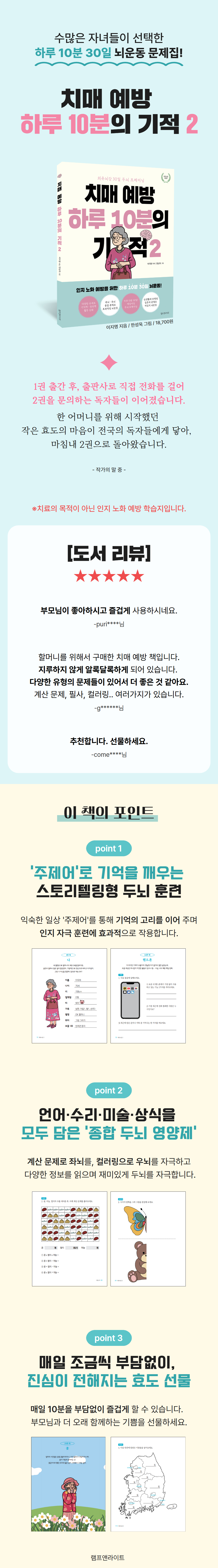 À̹ø 2±ÇÀº ¡®¹®Á¦¸¦ Ǫ´Â Ã¥¡¯À» ³Ñ¾î, Àϻ󿡼 Àͼ÷ÇÏ°Ô Á¢ÇÏ´Â ¡®ÁÖÁ¦¾î¡¯¸¦ Áß½ÉÀ¸·Î ±â¾ïÀ» È®ÀåÇÏ°í »ý°¢À» ¿¬°áÇÏ´Â µ¥ ÃÊÁ¡À» ¸ÂÃá µÎ³ú ÇнÀÁöÀÔ´Ï´Ù. ¾ð¾î, °è»ê, ÆÇ´Ü, ¹Ì¼ú(Ä÷¯¸µ) µî ´Ù¾çÇÑ µÎ³ú Ȱµ¿À» 30ÀÏ µ¿¾È, ÇÏ·ç 10ºÐ¾¿ ºÎ´ã ¾øÀÌ À̾ ¼ö ÀÖµµ·Ï ±¸¼ºÇß½À´Ï´Ù.