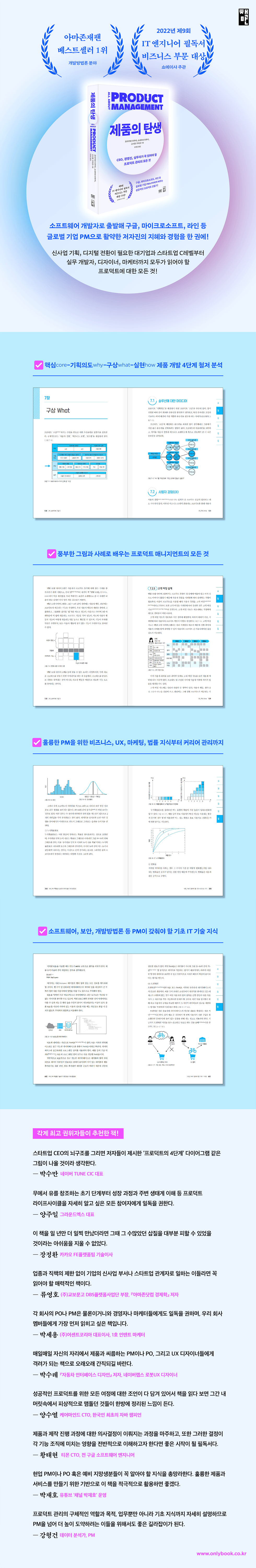 ¸ðµç ±â¾÷ÀÇ PM(ÇÁ·Î´öÆ® ¸Å´ÏÀú)¿Í PO(ÇÁ·Î´öÆ® ¿À³Ê)´Â ¹°·ÐÀ̰í, ½Å»ç¾÷ ±âȹ, µðÁöÅÐ Æ®·£½ºÆ÷¸ÞÀ̼Ç(DT)À» ¼öÇàÇÏ´Â ´ë±â¾÷°ú ½ºÅ¸Æ®¾÷ C·¹º§, ½Ç¹« °³¹ßÀÚ, µðÀÚÀ̳Ê, ¸¶ÄÉÅͰ¡ ¹Ýµå½Ã Àоî¾ß ÇÒ ÇÁ·Î´öÆ® °ü¸®¿¡ ´ëÇÑ ¸ðµç °Í! ºñÁî´Ï½º Àü·«, IT °³¹ß, UX µðÀÚÀÎ, ¸¶ÄÉÆÃ, °í°´ ¼º°ø, º¸¾È, ÁöÀûÀç»ê ¹ý·ü, Á¶Á÷ ¿î¿µ µî ¼¼°è À¯¼ö±â¾÷¿¡¼ B2C, B2B ÇÁ·Î´öÆ®¸¦ ±âȹÇϰí Ãâ½ÃÇϸç üµæÇÑ ´Ù¾çÇÑ Áö½Ä°ú ³ëÇϿ츦 dzºÎÇÑ ±×¸²°ú Ç¥, »ç·Ê¿Í ÇÔ²² ÀÚ¼¼È÷ ¼³¸íÇÑ´Ù.