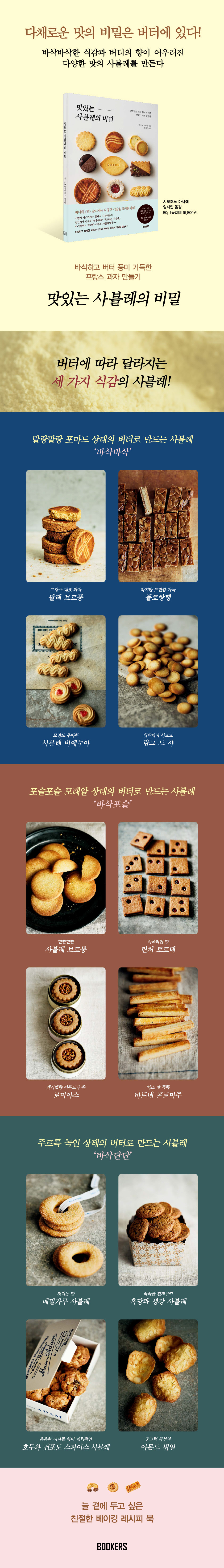 °í¼ÒÇÑ ¹öÅÍ Ç³¹Ì°¡ ¹Ù»èÇÏ°Ô ÆÛÁö´Â ÄíŰ, »çºí·¹. ¡®»çºí·¹¡¯¶ó´Â ¸íĪÀº ÇÁ¶û½º¾î·Î ¡®¸ð·¡¡¯¸¦ ¶æÇÏ´Â ¸»¿¡¼ ÆÄ»ýµÇ¾ú´Âµ¥, À̸§Ã³·³ ºÎµå·´°Ô Èð¾îÁöµí ³ì¾Æ³»¸®´Â ½Ä°¨ÀÌ °¡Àå Å« Ư¡ÀÌ´Ù. ÀÌ ÀÛÀº °úÀÚ´Â ¡®¹öÅÍ °úÀÚ¡¯¶ó°í ºÒ·¯µµ µÉ ¸¸Å ¹öÅÍÀÇ ÇÔ·®ÀÌ ³ôÀ¸¸ç, ¸ÀÀÖ´Â »çºí·¹¸¦ ¸¸µé±â À§Çؼ´Â ¹«¾ùº¸´Ù ¹öÅ͸¦ ´Ù·ç´Â ¹æ½ÄÀÌ Áß¿äÇÏ´Ù. ¹öÅÍÀÇ »óÅ¿¡ µû¶ó ½Ä°¨ÀÌ ´Þ¶óÁö±â ¶§¹®ÀÌ´Ù.