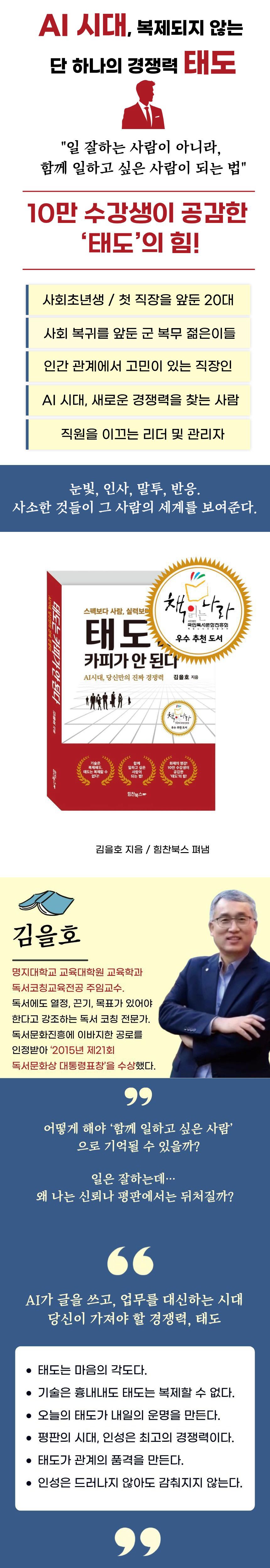 ¹Ì±¹ Á¦16´ë ´ëÅë·É ¿¡À̺귯ÇÜ ¸µÄÁÀÌ ³²±ä ÀÌ ¸»Àº ´Ü¼øÇÏÁö¸¸ °·ÂÇÏ´Ù. ±×´Â ³ë¿¹ ÇØ¹æÀ» ¾à¼ÓÇß°í, ½ÇÁ¦·Î ³²ºÏÀüÀïÀ̶ó´Â ¾öû³ ´ë°¡¸¦ Ä¡¸£¸é¼µµ ±× ¾à¼ÓÀ» ÁöÄ×´Ù. ¸µÄÁÀº ¾Ë°í ÀÖ¾ú´Ù. »ç¶÷ÀÇ Áø°¡´Â ÀÔÀÌ ¾Æ´Ï¶ó ¼Õ°ú ¹ß·Î Áõ¸íµÈ´Ù´Â »ç½ÇÀ». ¼¼»ó¿¡´Â ¸»¸¸ ÀßÇÏ´Â »ç¶÷ÀÌ ¸¹´Ù. ÇãȲÇÑ Æ÷ºÎ¸¦ À̾߱âÇϰí, ±×·²µíÇÑ º¯¸íÀ» ´Ã¾î³õ°í, È·ÁÇÑ ¾à¼ÓÀ» ³²¹ßÇÑ´Ù. °á±¹ ½Ã°£ÀÌ Áö³ª¸é µéų ÀÏÀÌ´Ù. ÁøÂ¥ Áß¿äÇÑ °Ç ±× »ç¶÷ÀÌ ¹«½¼ ¸»À» Çß´À³Ä°¡ ¾Æ´Ï¶ó ¾î¶² ŵµ·Î »ì¾Ò´À³ÄÀÌ´Ù. ¸»Àº ¼ø°£ÀÌÁö¸¸ ŵµ´Â ÀÏ»óÀ̰í, ¸»Àº ²Ù¸ç³¾ ¼ö ÀÖÁö¸¸ ŵµ´Â °¨Ãâ ¼ö ¾ø±â ¶§¹®ÀÌ´Ù. ȸÀÇ ½Ã°£¿¡´Â ¿Á¤ÀûÀ¸·Î ¸»ÇÏ´Ù°¡ µÚµ¹¾Æ¼¸é ºÒÆòÇÏ´Â »ç¶÷, »ó°ü ¾Õ¿¡¼´Â °ø¼ÕÇÏ´Ù°¡ ÈÄÀÓ¿¡°Ô´Â ÇԺηΠÇÏ´Â »ç¶÷, ¾à¼ÓÀº °ÅâÇÏ°Ô ÇÏ¸é¼ ½ÇõÀº ¾È ÇÏ´Â »ç¶÷. ÀÌ·± »ç¶÷µéÀÇ °øÅëÁ¡ÀÌ ÀÖ´Ù. ¹Ù·Î ¸»°ú ŵµ°¡ ´Ù¸£´Ù´Â »ç½ÇÀÌ´Ù. -¡®Á¦1Àå ŵµ´Â ÀΰÝÀÇ ¾ó±¼ÀÌ´Ù¡¯ Áß¿¡¼ 10³â µÚ »ç¶÷µéÀº ´ç½ÅÀ» ¾î¶»°Ô ±â¾ïÇÒ±î? ¡°±× »ç¶÷ ÁøÂ¥ ¶È¶ÈÇ߾¶ó°í ÇÒ±î? ¾Æ´Ï¸é ¡°±× »ç¶÷ Á¤¸» ÁÁÀº »ç¶÷À̾ú¾î¡±¶ó°í ÇÒ±î? ÀüÀÚ´Â °¨ÅºÀ» ³²±âÁö¸¸ ÈÄÀÚ´Â ±×¸®¿òÀ» ³²±ä´Ù. ´ç½ÅÀº ¾î¶² °ÍÀ» ³²±â°í ½ÍÀº°¡? AI°¡ ´ç½ÅÀÇ ÀÏÀ» ´ë½ÅÇÒ ¼ö À־ ´ç½ÅÀÇ µû¶æÇÔÀº ´ë½ÅÇÒ ¼ö ¾ø´Ù. ·Îº¿ÀÌ ´ç½Åº¸´Ù Á¤È®ÇÒ ¼ö À־ ´ç½ÅÀÇ Áø½ÉÀº Èä³» ³¾ ¼ö ¾ø´Ù. ±â¼úÀÌ ´ç½Åº¸´Ù ºü¸¦ ¼ö À־ ´ç½ÅÀÇ Ç°°ÝÀº º¹Á¦ÇÒ ¼ö ¾ø´Ù. ¼¼»óÀº °è¼Ó º¯ÇÑ´Ù. ±â¼úÀº ¹ßÀüÇϰí, Æ®·»µå´Â ¹Ù²î°í, ½ºÆåÀÇ ±âÁصµ ³ô¾ÆÁø´Ù. ÇÏÁö¸¸ ´Ü Çϳª º¯ÇÏÁö ¾Ê´Â Áø¸®°¡ ÀÖ´Ù. »ç¶÷Àº °á±¹ »ç¶÷µÊÀ¸·Î Æò°¡¹Þ´Â´Ù´Â Áø¸®. ±×·¯´Ï ±â¾ïÇ϶ó. ´ç½ÅÀÌ ½×´Â ½ºÆåÀº ¾ðÁ¨°¡ ³°°ÚÁö¸¸ ´ç½ÅÀÌ Å°¿ì´Â ŵµ´Â Æò»ý °£´Ù. ´ç½ÅÀÌ ¹è¿ì´Â ±â¼úÀº ¾ðÁ¨°¡ ´ëüµÇÁö¸¸, ´ç½ÅÀÌ º¸¿©ÁÖ´Â ÀμºÀº ¿µ¿øÈ÷ À¯ÀϹ«ÀÌÇÏ´Ù. º¹Á¦ÇÒ ¼ö ÀÖ´Â °Í¿¡ ¸Å´Þ¸®Áö ¸»°í º¹Á¦ ºÒ°¡´ÉÇÑ °ÍÀ» Ű¿ö¶ó. ¸ð¹æ °¡´ÉÇÑ ½Ã´ë, À¯ÀϹ«ÀÌÇÑ °æÀï·ÂÀº ŵµ¿Í ÀμºÀÌ´Ù. ±×°ÍÀÌ ³¡±îÁö ³²´Â ´ç½ÅÀÇ ÁøÂ¥ °¡Ä¡´Ù. -¡®Á¦2Àå º»ÁúÀº µå·¯³´Ù¡¯ Áß¿¡¼ ùÀλóÀº 3ÃÊ ¾È¿¡ °áÁ¤µÈ´Ù. ³Ê¹« ª´Ù°í »ý°¢Çϴ°¡? ÀǽÄÀûÀ¸·Îµç ¹«ÀǽÄÀûÀ¸·Îµç ¡°ÀÌ »ç¶÷ ±¦Âú³×¡± ¶Ç´Â ¡°ÀÌ »ç¶÷ Á» ±×·¸³×¡±·Î ÆÇ´ÜÀÌ ¼±´Ù. 3ÃÊ µ¿¾È ¿ì¸®°¡ º¸´Â °ÍÀº ´Ü¼øÇÑ ½Ç·ÂÀº ¾Æ´Ï´Ù. Çйú, °æ·Â, ÀÚ°ÝÁõµµ º¸ÀÌÁö ¾Ê´Â´Ù. ¿ì¸®´Â ŵµ¸¦ º»´Ù. ¾î¶»°Ô ÀλçÇÏ´ÂÁö ¾î¶² Ç¥Á¤À» Áþ´ÂÁö ¾î¶² ÀÚ¼¼·Î ¼ ÀÖ´ÂÁö°¡ ùÀλóÀ» ¸¸µç´Ù. ÇÏÁö¸¸ ùÀλ󺸴٠´õ °ÇÑ °Ô ÀÖ´Ù. ¹Ù·Î ¡®ÅµµÀÇ Àλó¡¯ÀÌ´Ù. ùÀλóÀº ¹Ù²Ü ¼ö ÀÖ´Ù. ¿ÊÀ» Àß ÀÔ°í, ¹Ì¼Ò¸¦ Áþ°í, ¸ñ¼Ò¸®¸¦ Á¶ÀýÇÏ¸é µÈ´Ù. ÇÏÁö¸¸ ŵµÀÇ ÀλóÀº ¹Ù²Ü ¼ö ¾ø´Ù. ½Ã°£ÀÌ Áö³ª¸é¼ ÀÚ¿¬½º·´°Ô µå·¯³ª´Â °ÍÀ̱⠶§¹®ÀÌ´Ù. ¸çÄ¥, ¸î ÁÖ, ¸î ´ÞÀ» ÇÔ²²ÇÏ¸é ¾Ë°Ô µÈ´Ù. ±× »ç¶÷ÀÇ ÁøÂ¥ ŵµ¸¦. ŵµ´Â ½Ç·Âº¸´Ù ¸ÕÀú ÀÐÈù´Ù. ȸÀÇ¿¡¼ ¹ßÇ¥¸¦ ÀßÇÏ´ÂÁö´Â ³ªÁß¿¡ ¾Ë ¼ö ÀÖÁö¸¸ ȸÀÇ¿¡ ¾î¶² ÀÚ¼¼·Î Âü¿©ÇÏ´ÂÁö´Â ¹Ù·Î º¸ÀδÙ. ÇÁ·ÎÁ§Æ®¸¦ Àß ¼öÇàÇÏ´ÂÁö´Â ½Ã°£ÀÌ Áö³ª¾ß ¾ËÁö¸¸ ÇÁ·ÎÁ§Æ®¿¡ ¾î¶² ¸¶À½À¸·Î ÀÓÇÏ´ÂÁö´Â Áï½Ã ´À²¸Áø´Ù. ±×·¡¼ ŵµ°¡ ¸ÕÀú´Ù. »ç¶÷µéÀº ´ç½ÅÀÇ ½Ç·ÂÀ» Æò°¡Çϱâ Àü¿¡ ÀÌ¹Ì ´ç½ÅÀÇ Åµµ¸¦ Àаí ÀÖ´Ù. -¡®Á¦3Àå ŵµ´Â ¿î¸íÀ» ¹Ù²Û´Ù¡¯ Áß¿¡¼ ³ª¹«¸¦ º¼ ¶§ ¹«¾ùÀ» ÁÖ·Î º¸´Â ÆíÀΰ¡? ÁÖ·Î ¿ì¸®´Â Áٱ⳪ °¡Áö¿Í ÀÙÀ» º»´Ù. ¿ïâÇÑ ¸ð½ÀÀÌ ´«¿¡ ¶ç°í ¾Æ¸§´ä´Ù. ÇÏÁö¸¸ Á¤ÀÛ ³ª¹«¸¦ ÁöÅÊÇÏ´Â °ÍÀº º¸ÀÌÁö ¾Ê´Â »Ñ¸®´Ù. ¶¥¼Ó ±íÀÌ ¹ÚÇô¼ ¾Æ¹«µµ º¸Áö ¾Ê´Â °÷¿¡¼ ¹¬¹¬È÷ ³ª¹«¸¦ ¶°¹ÞÄ£´Ù. »Ñ¸®°¡ ưưÇÏ¸é ³ª¹«´Â ÆøÇ³¿ì¿¡µµ ¾²·¯ÁöÁö ¾Ê°í, »Ñ¸®°¡ ¾àÇÏ¸é °ÑÀº ¸ÖÂÄÇØ º¸¿©µµ ±Ý¹æ ¹«³ÊÁø´Ù. »ç¶÷µµ ¸¶Âù°¡Áö´Ù. ŵµ´Â ÁÙ±â°í, ÀμºÀº »Ñ¸®´Ù. ŵµ´Â º¸ÀÌÁö¸¸ ÀμºÀº º¸ÀÌÁö ¾Ê´Â´Ù. ŵµ´Â »óȲ¿¡ µû¶ó ´Ù¸£°Ô º¸ÀÏ ¼ö ÀÖÁö¸¸ ÀμºÀº Ç×»ó °°´Ù. ŵµ´Â ²Ù¹Ð ¼ö ÀÖÁö¸¸ ÀμºÀº ²Ù¹Ð ¼ö ¾ø´Ù. ±×·¡¼ ÁøÂ¥ Áß¿äÇÑ °Ç ŵµ°¡ ¾Æ´Ï¶ó ÀμºÀÌ´Ù. ÁÁÀº ŵµ¸¸ °¡Áø »ç¶÷Àº ¼ø°£Àº ¸ÚÁ® º¸ÀÌÁö¸¸ À§±â°¡ ¿À¸é Èçµé¸°´Ù. ÇÏÁö¸¸ ±íÀº ÀμºÀ» °¡Áø »ç¶÷Àº Æò¼Ò¿£ Æò¹üÇØ º¸¿©µµ À§±â¿¡ °ÇÏ´Ù. »Ñ¸®°¡ ±í±â ¶§¹®ÀÌ´Ù. ÀμºÀ̶ó´Â »Ñ¸®°¡ ´Ü´ÜÇÏ°Ô ¹ÚÇô ÀÖ¾î¼ ¾î¶² ¹