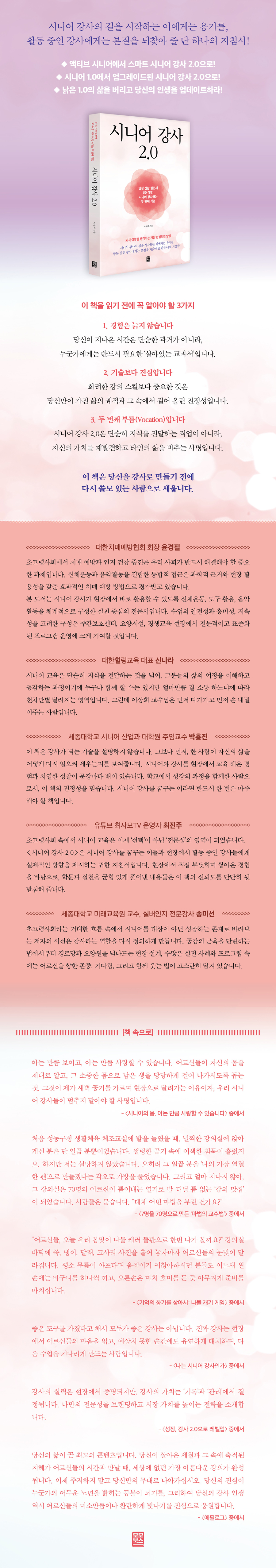 Ã¥¼ÓÀ¸·Î¾Æ´Â ¸¸Å º¸À̰í, ¾Æ´Â ¸¸Å »ç¶ûÇÒ ¼ö ÀÖ½À´Ï´Ù. ¾î¸£½ÅµéÀÌ ÀÚ½ÅÀÇ ¸öÀ» Á¦´ë·Î ¾Ë°í, ±× ¼ÒÁßÇÑ ¸öÀ¸·Î ³²Àº »ýÀ» ´ç´çÇÏ°Ô °É¾î ³ª°¡½Ãµµ·Ï µ½´Â °Í. ±×°ÍÀÌ Á¦°¡ »õº® °ø±â¸¦ °¡¸£¸ç ÇöÀåÀ¸·Î ´Þ·Á°¡´Â ÀÌÀ¯ÀÌÀÚ, ¿ì¸® ½Ã´Ï¾î °»çµéÀÌ ¸ØÃßÁö ¸»¾Æ¾ß ÇÒ »ç¸íÀÔ´Ï´Ù. - ¡´½Ã´Ï¾îÀÇ ¸ö, ¾Æ´Â ¸¸Å »ç¶ûÇÒ ¼ö ÀÖ½À´Ï´Ù¡µ Áß¿¡¼ óÀ½ ¼ºµ¿±¸Ã» »ýȰüÀ° üÁ¶±³½Ç¿¡ ¹ßÀ» µé¿´À» ¶§, ³ÎÂïÇÑ °Àǽǿ¡ ¾É¾Æ °è½Å ºÐÀº ´Ü Àϰö ºÐ»ÓÀ̾ú½À´Ï´Ù. ½ä··ÇÑ °ø±â ¼Ó¿¡ ¾î»öÇÑ Ä§¹¬ÀÌ Èê·¶Áö¿ä. ÇÏÁö¸¸ Àú´Â ½Ç¸ÁÇÏÁö ¾Ê¾Ò½À´Ï´Ù. ¿ÀÈ÷·Á ±× Àϰö ºÐÀ» ¡®³ªÀÇ °¡Àå ¿·ÄÇÑ ÆÒ¡¯À¸·Î ¸¸µé°Ú´Ù´Â °¢¿À·Î °¡¹æÀ» Ç®¾ú½À´Ï´Ù. ±×¸®°í ¾ó¸¶ Áö³ªÁö ¾Ê¾Æ, ±× °ÀǽÇÀº 70¸íÀÇ ¾î¸£½ÅÀÌ »Õ¾î³»´Â ¿±â·Î ¹ß µðµô Æ´ ¾ø´Â ¡®°ÀÇ ¸ÀÁý¡¯ÀÌ µÇ¾ú½À´Ï´Ù. »ç¶÷µéÀº ¹¯½À´Ï´Ù. ¡°´ëü ¾î¶² ¸¶¹ýÀ» ºÎ¸° °Ç°¡¿ä?¡± - ¡´7¸íÀ» 70¸íÀ¸·Î ¸¸µç ¡®¸¶¹ýÀÇ ±³¼ö¹ý¡¯¡µ Áß¿¡¼ ¡°¾î¸£½Åµé, ¿À´Ã ¿ì¸® º½¸ÂÀÌ ³ª¹° ij·¯ µéÆÇÀ¸·Î Çѹø ³ª°¡ º¼±î¿ä?¡± °ÀÇ½Ç ¹Ù´Ú¿¡ ¾¦, ³ÃÀÌ, ´Þ·¡, °í»ç¸® »çÁøÀ» Èð¾î ³õÀÚ¸¶ÀÚ ¾î¸£½ÅµéÀÇ ´«ºûÀÌ ´Þ¶óÁý´Ï´Ù. Æò¼Ò ¹«¸ÀÌ ¾ÆÇÁ´Ù¸ç ¿òÁ÷À̱⠱ÍÂú¾ÆÇϽôø ºÐµéµµ ¾î´À»õ ¿Þ¼Õ¿¡´Â ¹Ù±¸´Ï¸¦ Çϳª¾¿ ³¢°í, ¿À¸¥¼ÕÀº ¸¶Ä¡ È£¹Ì¸¦ µç µí ¾ß¹«Áö°Ô Áغñ¸¦ ¸¶Ä¡½Ê´Ï´Ù. - ¡´±â¾ïÀÇ Çâ±â¸¦ ã¾Æ¼: ³ª¹° ij±â °ÔÀÓ¡µ Áß¿¡¼ ÁÁÀº µµ±¸¸¦ °¡Á³´Ù°í ÇØ¼ ¸ðµÎ°¡ ÁÁÀº °»ç´Â ¾Æ´Õ´Ï´Ù. ÁøÂ¥ °»ç´Â ÇöÀå¿¡¼ ¾î¸£½ÅµéÀÇ ¸¶À½À» Àаí, ¿¹»óÄ¡ ¸øÇÑ ¼ø°£¿¡µµ À¯¿¬ÇÏ°Ô ´ëóÇϸç, ´ÙÀ½ ¼ö¾÷À» ±â´Ù¸®°Ô ¸¸µå´Â »ç¶÷ÀÔ´Ï´Ù. - ¡´³ª´Â ½Ã´Ï¾î °»çÀΰ¡¡µ Áß¿¡¼ °»çÀÇ ½Ç·ÂÀº ÇöÀå¿¡¼ Áõ¸íµÇÁö¸¸, °»çÀÇ °¡Ä¡´Â ¡®±â·Ï¡¯°ú ¡®°ü¸®¡¯¿¡¼ °áÁ¤µË´Ï´Ù. ³ª¸¸ÀÇ Àü¹®¼ºÀ» ºê·£µùÇÏ°í ½ÃÀå °¡Ä¡¸¦ ³ôÀÌ´Â Àü·«À» ¼Ò°³ÇÕ´Ï´Ù. - ¡´¼ºÀå, °»ç 2.0À¸·Î ·¹º§¾÷¡µ Áß¿¡¼ ´ç½ÅÀÇ »îÀÌ °ð ÃÖ°íÀÇ ÄÜÅÙÃ÷ÀÔ´Ï´Ù. ´ç½ÅÀÌ »ì¾Æ¿Â ¼¼¿ù°ú ±× ¼Ó¿¡ ÃàÀûµÈ ÁöÇý°¡ ¾î¸£½ÅµéÀÇ ½Ã°£°ú ¸¸³¯ ¶§, ¼¼»ó¿¡ ¾ø´ø °¡Àå ¾Æ¸§´Ù¿î °Àǰ¡ ¿Ï¼ºµË´Ï´Ù. ÀÌÁ¦ ÁÖÀúÇÏÁö ¸»°í ´ç½Å¸¸ÀÇ ¹«´ë·Î ³ª¾Æ°¡½Ê½Ã¿À. ´ç½ÅÀÇ Áø½ÉÀÌ ´©±º°¡ÀÇ ¾îµÎ¿î ³ë³âÀ» ¹àÈ÷´Â µîºÒÀÌ µÇ±â¸¦, ±× ¸®ÇÏ¿© ´ç½ÅÀÇ °»ç Àλý ¿ª½Ã ¾î¸£½ÅµéÀÇ ¹Ì¼Ò¸¸ÅÀ̳ª Âù¶õÇÏ°Ô ºû³ª±â¸¦ Áø½ÉÀ¸·Î ÀÀ¿øÇÕ´Ï´Ù. - ¡´¿¡Çʷαסµ Áß¿¡¼ |