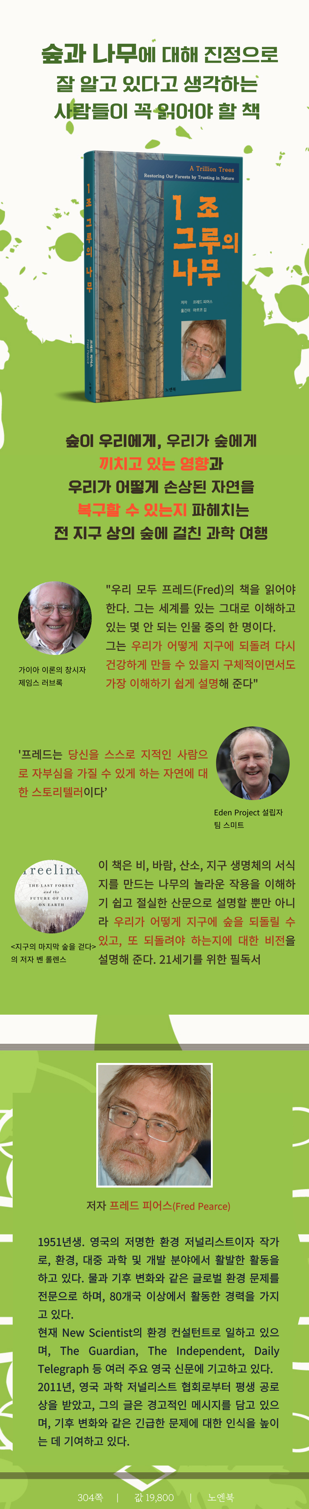 ½£ÀÌ Á¸ÀçÇϱâ Àü Áö±¸ÀÇ ´ë±â´Â ¶ß°Ì°í, °ÇÁ¶ÇßÀ¸¸ç »ê¼Ò´Â ºÎÁ·Çϰí ÀÌ»êÈź¼Ò°¡ dzºÎÇß´Ù. Áö±ÝÀº 3Á¶ ±×·çÀÇ ³ª¹«µéÀÌ ÀÌ»êÈź¼Ò¸¦ Èí¼öÇϰí Àü Áö±¸»ó¿¡ ºñ¸¦ »Ñ·ÁÁÖ´Â ¡®ÇöóÀ× ¸®¹ö¡¯¸¦ À¯ÁöÇϱâ À§ÇØ ¹°±â¸¦ »Õ¾î³¿À¸·Î½á ¿ì¸®ÀÇ ¿À» ½ÄÇôÁÖ°í ¹°À» °ø±ÞÇØ ÁØ´Ù. ³ª¹«ÀÇ È£ÈíÀº ±¸¸§À» ¸¸µé°í ½ÉÁö¾î ¹Ù¶÷À» Çü¼ºÇÏ¸é¼ ´ë±âÀÇ ÈÇÐÀû ±¸¼ºÀ» º¯È½Ã۱⵵ ÇÑ´Ù. °£´ÜÈ÷ ¸»ÇÏÀÚ¸é ³ª¹«´Â ¿ì¸® Áö±¸ÀÇ »ý¸íÀ» À¯ÁöÇÏ´Â ±âÈĸ¦ âÁ¶Çϰí À¯ÁöÇØ ÁÖ´Â °ÍÀÌ´Ù. ¿©±â¼ ±× À̾߱⸦ ÇØº¸·Á´Â °ÍÀÌ´Ù. (21p) ¿õ°Å´Â ³íÆò¿¡¼ ¡®ÀÌ·¯ÇÑ Á¾·¡ÀÇ Åë³äÀº À߸øµÇ¾ú´Ù. »ç½ÇÀº ¸ðµç »óÈ£ÀÛ¿ëÀ» °í·ÁÇÏ¸é ´ë±Ô¸ð »ê¸² ÇǺ¹·ü Áõ°¡´Â ½ÇÁ¦·Î Áö±¸ ¿Â³È¸¦ ¾ÇȽÃų ¼ö ÀÖ´Ù¡¯°í ±â¼úÇß´Ù. ºÒ ¼ÓÀ¸·Î ¿¬·á¸¦ ½ñ¾Æº×´Â °ÝÀ̶ó¸é¼ ÆíÁýÀÚ´Â ±×³àÀÇ ±â°í¹®À¸·Î ¡®Áö±¸¸¦ ±¸ÇÏ·Á¸é ³ª¹«¸¦ ½ÉÁö ¸»¾Æ¾ß ÇÑ´Ù¡¯°í Çìµå¶óÀÎÀ» ½è´Ù. (52p~53p) »êºÒÀÇ ¿¬¼Ò´Â ¼ö¸ñµéÀÇ Á¾ÀÚ¸¦ ¸ñÁúÀÇ ¿ë±â·ÎºÎÅÍ ¹æÃâÇÏ¿© Á¾ÀÚ°¡ ¹ß¾ÆÇÒ ¿µ¾çºÐÀÌ Ç³ºÎÇÑ Àå¼Ò¸¦ ¸¸µé¾îÁØ´Ù. »êºÒÀÌ ¾øÀÌ´Â ½£µµ ¾øÀ» °ÍÀÌ´Ù. »êºÒÀÌ ¸ÍÀ§¸¦ ¶³Ä¥¼ö·Ï ÀϺΠ°úÇÐÀÚµéÀº ¾ß»ýµ¿¹°ÀÇ ¸êÁ¾À» °æ°íÇÑ´Ù. ½Ã´Ïµå´ëÇб³ÀÇ Å©¸®½º µñ¸ÇÀº 10¾ï ¸¶¸® ÀÌ»óÀÇ Æ÷À¯µ¿¹°, ÆÄÃæ·ù, Á¶·ù°¡ ºÒ¿¡ Ÿ°í ±¾ÁÖ¸®°Å³ª ¸Í±Ý·ù¿Í ¸Í¼ö¿¡°Ô Àâ¾Æ¸ÔÈú °ÍÀ¸·Î ¿¹ÃøÇϱ⵵ ÇÑ´Ù. (76p~77p) Âû½º Ŭ·¹¸àÆ®´Â ¾à 500³âº¸´Ù ¾à°£ ´õ ÀÌÀü±îÁö ¿À´Ã³¯ Áö±¸»ó¿¡¼ °£¼·¹ÞÁö ¾ÊÀº ¿´ë¿ì¸²À¸·Î º¸ÀÌ´Â °¡Àå Å« Áö¿ªÀÇ ´ëºÎºÐÀº ÀηùÀÇ È°µ¿À¸·Î Á¡À¯µÈ Áö´ëÀÌ´Ù. 10,000³âÀÌ»ó µ¿¾È Á¤ÂøÀεéÀº »ê¸²À» ´Ù½Ã °¡²Ù°í, ÇÊ¿äÇÑ °ÍµéÀ» ½É°í, ÇÊ¿äÇÏÁö ¾ÊÀº °ÍµéÀº µµÅ½ÃÄ×À¸¸ç, Å¿ì°í, ±â¸£°í, ¹°À» »©°í, Àú¼ö¸¦ Çϰí, Åä¾çÀ» °³·®ÇÏ°í ¼öõ °³ÀÇ ¸¶À»°ú ¿©³²Àº °³Àǵµ½Ã Á¤ÁÖÁö¸¦ ¸¸µé¾ú´Ù. Ŭ·¹¸àÆ®´Â À¯·´ Á¦±¹ÁÖÀǰ¡ µµÂøÇß´ø ¡®1492³â¿¡´Â ¿ø½Ã °æ°üÀÌ È¤½Ã ÀÖ´Ù ÇÏ´õ¶óµµ °ÅÀÇ ³²¾ÆÀÖÁö ¾Ê¾Ò´Ù. õ¿¬À¸·Î º¸ÀÌÁö¸¸ ¸¹Àº ÇöÀçÀÇ ¾Æ¸¶Á¸½£µéÀº °¡²Ù¾îÁø °Í¡¯À̶ó°í ¸»Çß´Ù.(83p) ÇÇÅÍ Æ÷ŸÆ÷ÇÁ´Â Áö³ 40³â °£ÀÇ ÅäÁöÀÌ¿ë º¯È °ËÅä¿¡¼ ¡®Àü Áö±¸ÀûÀÎ Â÷¿ø¿¡¼ »ê¸²¸éÀûÀÌ °¨¼ÒÇØ¿Ô´Ù´Â ¿ì¼¼ÇÑ °üÁ¡°ú´Â ¹Ý´ë·Î¡¯ ½Ä»ý ÇǺ¹ÀÌ 2¾ï 2õ 4¹é¸¸ Çퟸ£, Áï 7%³ª Áõ°¡Çß´Ù°í °á·ÐÁö¾ú´Ù. ¿´ëÁö¿ª¿¡¼ ¼Õ½ÇÀº À̾îÁ³Áö¸¸, À¯·´ÀÇ ³ó°æÁö¿¡ ´ëÇÑ ½Ä»ý ħÀÔÀ¸·ÎºÎÅÍ Áß±¹¿¡¼ Á¶Á÷ÈÇÑ Á¶¸² »ç¾÷, ¼¼°è¿Â³È¿¡ µû¸¥ ºÏºÎ ¸Õ Áö¿ª°ú »ê¾ÇÁö¿ªÀÇ Ãµ¿¬ È®»ê¿¡ À̸£´Â ¿©·¯ Áö¿ª¿¡¼ÀÇ Áõ°¡´Â ¿´ëÁö¿ªÀÇ ¼Õ½Ç ÀÌ»óÀ» º¸»óÇϰí ÀÖ´Ù. (143~144p) ÀÚ¿¬ ½º½º·ÎÀÇ µµ±¸¿¡ ¸Ã°Ü µÎ¸é ³ª¹«µéÀº °úÇÐ, ¼¼±Ý °¨¸é, ź¼Ò¹èÃâ±Ç, Á¤ºÎ º¸Á¶±Ý, ¹¦¸ñ īŻ·Î±×, Á¤´ç ¼±¾ð¹®, ½ÉÁö¾î´Â »ð°ú °°Àº ÀÚ¿øÀÌ ¾ø¾îµµ ÀÚ¶ó³¯ ¼ö ÀÖ´Ù. µû¶ó¼¾ß»ý º¹¿øÀ» À§ÇÑ ¿òÁ÷ÀÓÀº »ó¾÷ÀûÀΠħ¿±¼ö¸¦ »ª»ªÇÏ°Ô ½ÉÁö ¾Ê°í, °ú°Å¿¡ Á¸ÀçÇß´Ù°í ¹Ï´Â °Íµé·Î º¹¿øÇÏ·Á°í ³ë·ÂÇÏÁö ¸»°í, ±×Àú ÀÚ¿¬ ½º½º·Î ¼±ÅÃÇϵµ·Ï ³»¹ö·ÁµÎ´Â °ÍÀÌ´Ù. (157p) Àü ¼¼°èÀÇ »ê¸²Àº °ú°Å¸¦ ÀçâÁ¶ÇÏ·Á´Â ³ë·ÂÀÌ ¾Æ´Ï¶ó ±×·¯ÇÑ ½£µéÀÌ ±×µé ÀÚ½ÅÀÇ »õ·Î¿î ½£À» ã±â À§ÇÑ °ø°£À» Á¦°øÇÔÀ¸·Î½á ȸº¹µÉ °ÍÀÌ´Ù. ¾î¶² °æ¿ì¿¡´Â Àü¿¡´Â ÀӾ߿´À¸³ª ÇöÀç´Â ºñ¾î ÀÖ´Â °÷¿¡¼³ª ¡®È²Æó¡¯ÇØÁ® ¹ö·ÁÁø °÷À¸·Î Ä¡ºÎµÇ°ï Çß´ø ÀӾ߿¡¼µµ ³ªÅ¸³¯ ¼ö ÀÖ´Â Çö»óÀÌ´Ù. (199p) ³ª¹«µé »çÀÌÀÇ ³ó»ç°¡ ÀßµÈ´Ù¸é »ê¸²º¸È£ÀÇ °¡Àå ³íÀïÀûÀÎ ÁÖÁ¦ Áß ÇϳªÀÎ À̵¿Àç¹è¸¦ »õ·Î¿î ½Ã¼±À¸·Î ¹Ù¶óºÁ¾ß ÇÒ ¶§¶ó°í ÇÒ ¼ö ÀÖ´Ù. ¼öõ ³â µ¿¾È ³ó¹ÎµéÀº ÀÛ¹°À» Ű¿ì±â À§ÇØ ÀϽÃÀûÀ¸·Î ½£À» °³°£ÇÏ¸é¼ ½£À» ¶°µ¹¾Ò´Ù. ³óÀå¿¡ ³ª¹«¸¦ µÎ´Â °ÍÀÌ ¾Æ´Ï¶ó ³óÀåÀ» ½£¼Ó¿¡ µÐ °ÍÀ̾ú´Ù. (211p) ¡®Áö¿ªÀÇ ¿øÁֹεéÀÌ ¿´ë¿ì¸²À» ¾î¶»°Ô °ü¸®ÇØ¾ß ÇÏ´ÂÁö ¿ì¸®º¸´Ù Àß ¾Ë°í ÀÖÀ¸¸ç¡¯, ±×¸®°í ¡®³î¶ó¿î ÀüÅë Áö½ÄÀ» °¡Áö°í ÀÖ´Ù. ÅäÂøÀû Áö½ÄÀº ¿ÜºÎ·ÎºÎÅÍÀÇ Áö½Ä¿¡ ºñÇØ ´Ù¾çÇÑ Ãø¸é¿¡¼ ¿ì¿ùÇÏ´Ù. ¿ì¸®°¡ ¼¼°èÀÇ ½£µéÀ» ±¸Çس»°í, À°¼º½Ã۰í, º¹¿øÇϰíÀÚ ÇÑ´Ù¸é, À̸¦ ´Þ¼ºÇϱâ À§ÇÑ ÃÖ°íÀÇ Àü¹®¼ºÀº Áö±Ý ±× ½£¼Ó¿¡¼ »ýÁ¸ÇÏ°í °Ç°ÇÏ°Ô »ì¾ÆÀÖ´Â °ÍÀÌ´Ù. ±×µéÀÇ ¿µ¿ªÀ» º¸Àü½ÃŰ´Â µ¥ ÀÖ¾î¼ ¹æ°üÀÚÀÏ ¼ö ¾ø´Â °ÍÀÌ´Ù. (229p) ¡®»ý°è¿Í ¹