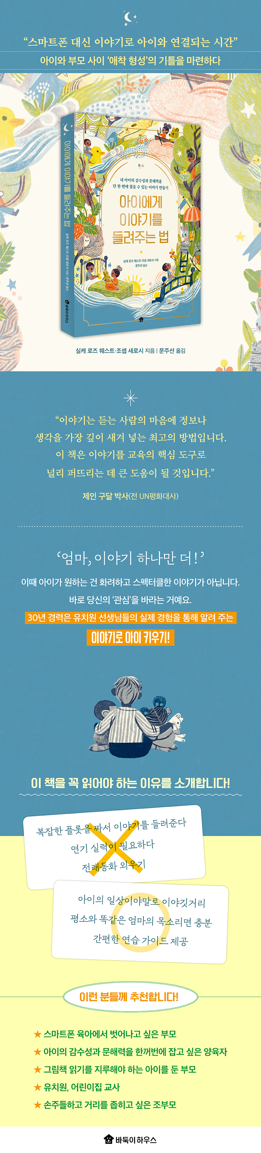 ÀÌ Ã¥Àº ¡®¸ðµç ºÎ¸ð´Â À̾߱â²ÛÀ¸·Î¼ÀÇ ÀÚÁúÀ» Áö´Ï°í ÀÖ´Ù¡¯¶ó´Â ÀüÁ¦¿¡¼ Ãâ¹ßÇÑ´Ù. ¹°·Ð À̾߱â²ÛÀ̶ó¸é À¯·ÁÇÑ ¸»¼Ø¾¾¸¦ ÀÚ¶ûÇÏ¸ç ¾ÆÀ̸¦ ȤÇÏ°Ô ¸¸µå´Â ¸Å·ÂÀ» ¹ß»êÇØ¾ß ÇÏ´Â °ÍÀÌ ¾Æ´Ò±î °í¹ÎÇÒ ¼öµµ ÀÖ´Ù. ÇÑÆíÀ¸·Î´Â ³»°¡ ÇÏ´Â À̾߱Ⱑ º¸À߰;ø´Â °ÍÀ̶ó¸é ¾î¶³Áö¿¡ ´ëÇÑ °í¹Îµµ ´Ã¾î³õÀ» ¼ö ÀÖÀ» °ÍÀÌ´Ù. ±×·¯³ª ÀúÀÚµéÀº ³» ¾ÆÀÌ¿¡°Ô À̾߱⸦ µé·ÁÁشٴ °ÍÀÌ ½ºÆåÅÍŬ ¿µÈ¸¦ ¸¸µé ¹ýÇÑ ¿õÀåÇÑ ½Ã³ª¸®¿À¸¦ ¸¸µé°í ÃÎÃÎÇÏ°Ô ¿«ÀÎ ¹®ÇÐ ÀÛǰÀ» ¾²´Â °ÍÀÌ ¾Æ´Ï¶ó´Â Á¡À» ºÐ¸íÈ÷ ¹àÈù´Ù. ´Ù½Ã ¸»ÇØ ÀÌ Ã¥Àº À̾߱âÀÇ ¡®±â¼ú¡¯¿¡ ÃÊÁ¡À» ¸ÂÃá °ÍÀÌ ¾Æ´Ï¶ó ¾ÆÀ̸¦ ¡®°üÂû¡¯ÇÏ°í ¡®°ø°¨¡¯ÇÔÀ¸·Î½á ¹«±Ã¹«ÁøÇÑ À̾߱âÀÇ ¼ÒÀ縦 ãÀ» ¼ö ÀÖ´Ù´Â °Í¿¡¼ºÎÅÍ ½ÃÀÛÇØ¾ß ÇÑ´Ù´Â °ÍÀÌ´Ù.
