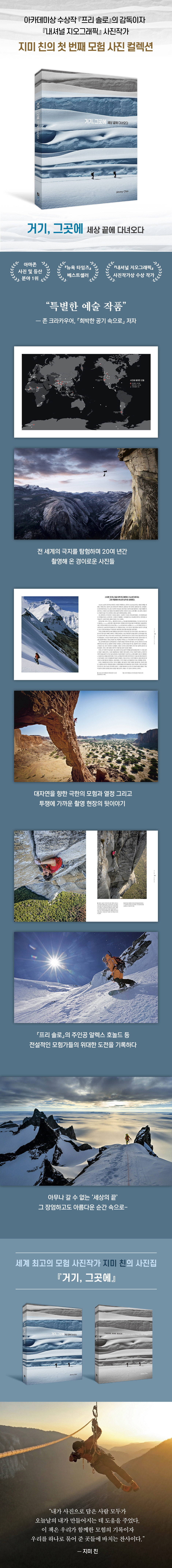 ¡º°Å±â, ±×°÷¿¡¡»´Â Áö¹Ì Ä£ÀÌ ÀÚ½ÅÀÇ ¸ðÇè »çÁø ´ëÇ¥ÀÛÀ» ¾ö¼±ÇØ ³»³õÀº ù ¹øÂ° »çÁøÁýÀÌ´Ù. Àü ¼¼°èÀÇ ±ØÁö¸¦ ŽÇèÇϸç 20¿© ³â µ¿¾È ÃÔ¿µÇØ ¿Â °æÀÌ·Î¿î »çÁøµéÀ» Çѵ¥ ¸ð¾Ò´Ù. Ãâ°£ Áï½Ã ¹Ì±¹ ¾Æ¸¶Á¸ »çÁø ºÐ¾ß¿Í µî»ê ºÐ¾ß º£½ºÆ®¼¿·¯ 1À§¿¡ ¿Ã¶úÀ¸¸ç, ´º¿å ŸÀÓÁî º£½ºÆ®¼¿·¯°¡ µÇ¾ú´Ù. ±×´Â ÀÌ Ã¥À» ÅëÇØ ¾Æ¹«³ª °¥ ¼ö ¾ø´Â ¡®¼¼»óÀÇ ³¡¡¯¿¡¼¸¸ º¼ ¼ö ÀÖ´Â Àå¾öÇÏ°íµµ ¾Æ¸§´Ù¿î ¼ø°£À¸·Î ¿ì¸®¸¦ À̲ö´Ù.