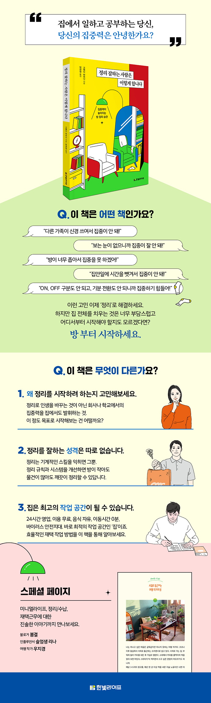 Áý¿¡¼ »ç¹«½ÇÀ̳ª Çб³¿¡¼Ã³·³ ÁýÁß·ÂÀ» ¹ßÈÖÇϱâ´Â ½±Áö ¾Ê½À´Ï´Ù. ÁýÁßÀ» ÀßÇϱâ À§Çؼ´Â ¸ÕÀú ³»°¡ ¸Ó¹«´Â °ø°£ÀÌ ±ú²ýÇØ¾ß ÇÕ´Ï´Ù. ÇÏÁö¸¸ Áý Àüü¸¦ Ä¡¿ì´Â °ÍÀº ³Ê¹« ºÎ´ã½º·´°í ¾îµð¼ºÎÅÍ ½ÃÀÛÇØ¾ß ÇÒÁöµµ ¸ð¸£°Ú´Ù¸é ¾î¶»°Ô ÇØ¾ß ÇÒ±î¿ä?