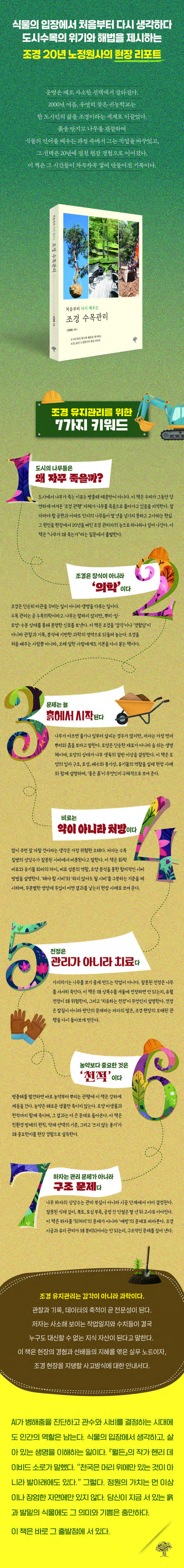 Á¶°æ ÇöÀå¿¡ ¼ º¸¸é ¿ì¸®³ª¶ó Á¶°æ ÀηÂÀÇ Çö½Ç°ú ÇÔ²² ºÐ¸íÇÑ Áö½ÄÀÇ °ø¹éÀÌ µå·¯³´Ù. Á¤¿øÇб³¸¦ Á¹¾÷ÇÑ Àü¹® Á¤¿ø»çº¸´Ù ³ó¾÷¿¡¼ Àü¾÷Ç߰ųª ºñÀü°øÀÚ·Î ÇöÀåÀ» ¹è¿ö ¿Â À̵éÀÌ ¸¹°í, ÀϺδ Áß±¹ ±³Æ÷ ÀηÂÀ¸·Î ±¸¼ºµÇ¾î ÀÖ´Ù. ÀÌ ÀÚü°¡ ¹®Á¦´Â ¾Æ´ÏÁö¸¸, ³ó»ç¿Í Á¶°æÀÌ º»ÁúÀûÀ¸·Î ´Ù¸£´Ù´Â Á¡¿¡¼ ÇѰ谡 ¹ß»ýÇÑ´Ù. »ç°ú °ú¼ö¿ø¿¡´Â »ç°ú³ª¹«¸¸ ½ÉÁö¸¸, Á¤¿ø¿¡´Â »ç°ú³ª¹«»Ó ¾Æ´Ï¶ó ¼Ò³ª¹«¿Í °ü¸ñ, ¼ö¹é Á¾ÀÇ ¼ö¸ñ°ú ÃÊȰ¡ ÇÔ²² ÀÚ¶ó´Â º¹ÇÕÀûÀΠȯ°æÀÌ Çü¼ºµÈ´Ù. ½Ä¹°ÀÇ »ý¸®, º´ÇØÃæ, Åä¾ç, ½Ãºñ¿Í °ü¼ö, °èÀýº° °ü¸®±îÁö ÈξÀ ¼¼ºÐȵǰí Àü¹®ÀûÀÎ Áö½ÄÀÌ ¿ä±¸µÇÁö¸¸, Á¶°æ À¯Áö°ü¸®¿¡ Æ¯ÈµÈ ½Ç¹«¼´Â ½ÃÁß¿¡¼ Á»Ã³·³ ã¾Æº¸±â ¾î·Æ´Ù. °á±¹ ÇöÀå¿¡¼´Â ¿©±âÀú±â Èð¾îÁø Áö½ÄÀ» °³ÀÎÀÇ °æÇè°ú °¨°¢À¸·Î ¿«¾î °¡¸ç ÀÛ¾÷À» ÀÌ¾î °¡°Ô µÇ°í, ü°èÀûÀÎ ±âÁذú Âü°í¼¿¡ ´ëÇÑ °¥ÁõÀº ´Ã Á¸ÀçÇØ ¿Ô´Ù. ÀÌ Ã¥Àº ¹Ù·Î ±× °ø¹éÀ» ÇöÀåÀÇ ¾ð¾î·Î ¸Þ¿ì°íÀÚ ÇÑ ½Ãµµ¿¡¼ Ãâ¹ßÇß´Ù.