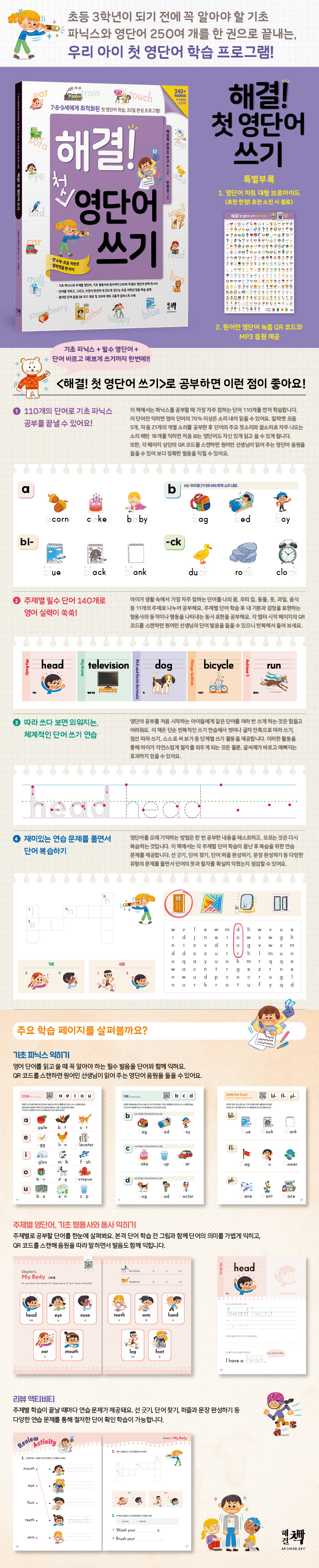 ¿µ¾î ´Ü¾î¸¦ óÀ½ °øºÎÇÒ ¶§´Â ÀÏ»ó»ýȰ¿¡¼ ÀÚÁÖ Á¢ÇÏ´Â »ç¹°µé Áß ¾ÆÀ̵鿡°Ô Ä£¼÷Çϸ鼵µ öÀÚ°¡ º¹ÀâÇÏÁö ¾ÊÀº ´Ü¾î¸¦ ¸ÕÀú ¹è¿ì´Â °ÍÀÌ Áß¿äÇÕ´Ï´Ù. ¡´Çذá! ù ¿µ´Ü¾î ¾²±â¡µ¿¡´Â ÀÌÁ¦ ¸· ¾ËÆÄºªÀ» ¶¾ ¾ÆÀ̵鿡°Ô Ä£¼÷ÇÑ ÁÖÁ¦º° Çʼö ¿µ´Ü¾î 250¿© °³°¡ ½Ç·Á ÀÖ½À´Ï´Ù. ÀÌ Ã¥Àº ¾ÆÀ̵éÀÌ ¿µ´Ü¾î¸¦ óÀ½ °øºÎÇÒ ¶§ ¹«ÀÛÁ¤ ¿©·¯ ¹ø ¾²±â¸¸ ÇÏ´Â ´ÜÁ¶·Î¿î ¹æ¹ý¿¡¼ ¹þ¾î³ª ±×¸²À» ±×¸®°í, ´Ü°èº°·Î µû¶ó ¾²°í, Àç¹ÌÀÖ´Â ¹®Á¦¸¦ Ç®¸é¼ ÀÚ¿¬½º·´°Ô ´Ü¾îÀÇ Ã¶ÀÚ¿Í Àǹ̸¦ ÀÍÈú ¼ö ÀÖµµ·Ï ¸¸µé¾ú½À´Ï´Ù.
