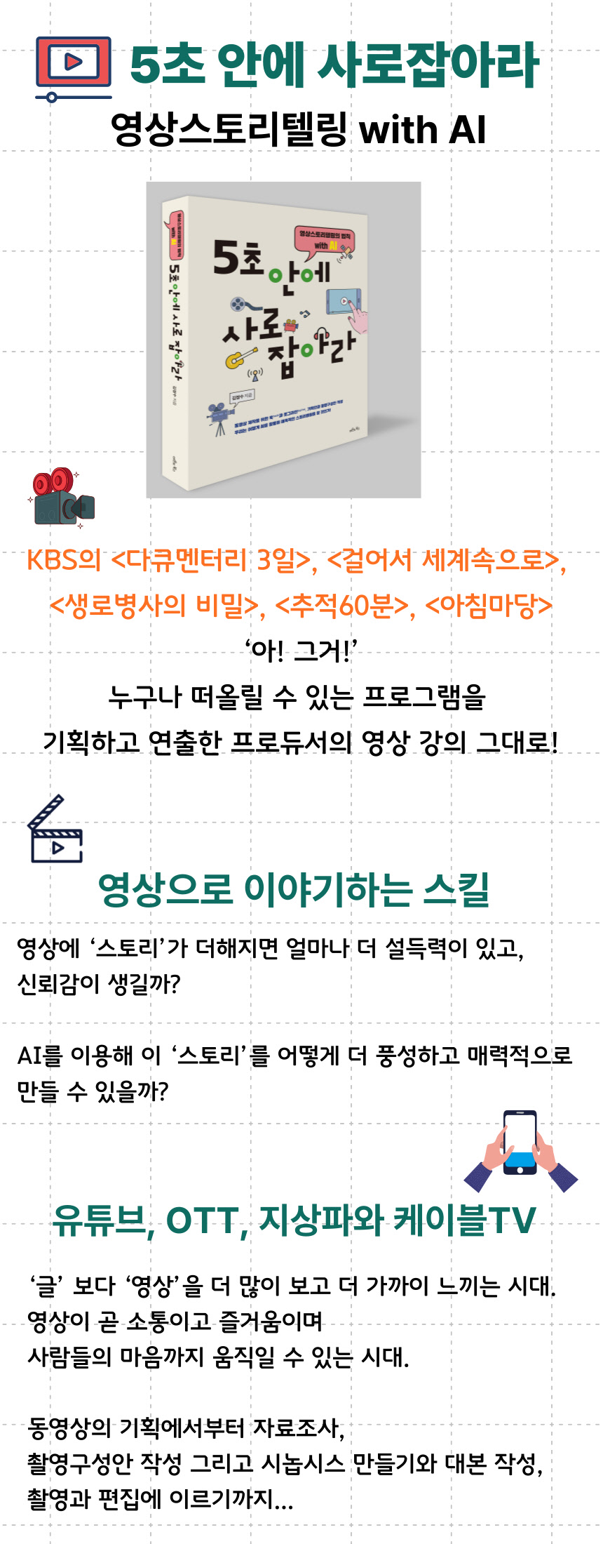 ½ºÅ丮°¡ ÀÖ´Â ¿µ»ó, ù ȸ鸸 º¸¾Æµµ ¡®ÁÁ¾Æ¿ä¡¯¿Í ¡®±¸µ¶¡¯À» ´©¸¦ ¸¶À½ÀÌ »ý±â´Â ¿µ»óÀº ¾î¶»°Ô ¸¸µå´ÂÁö°¡ ÀÌ Ã¥¿¡ ´ã°Ü ÀÖ´Ù. ±×¸®°í ¿©·¯ºÐÀÇ ¶È¶ÈÇÑ ºñ¼ÀÌÀÚ ÆÄÆ®³ÊÀÎ AI¸¦ ¾î¶»°Ô Ȱ¿ëÇÒ °ÍÀÎÁöµµ °¢ À帶´Ù ¾ÆÁÖ ±¸Ã¼ÀûÀÌ°í ¼¼ºÎÀûÀ¸·Î ´ã°Ü ÀÖ´Ù.